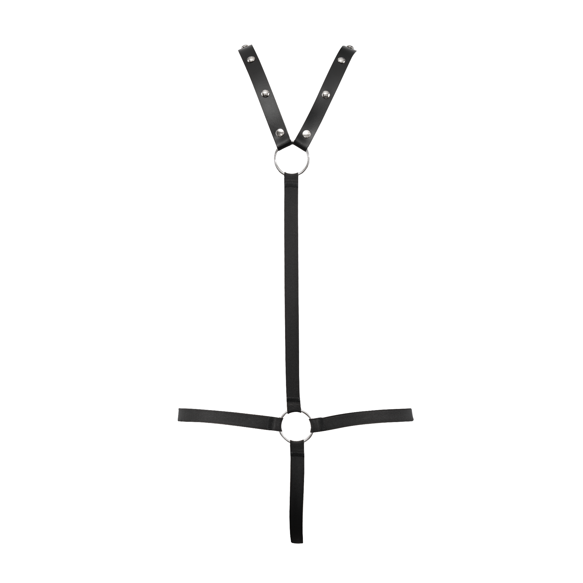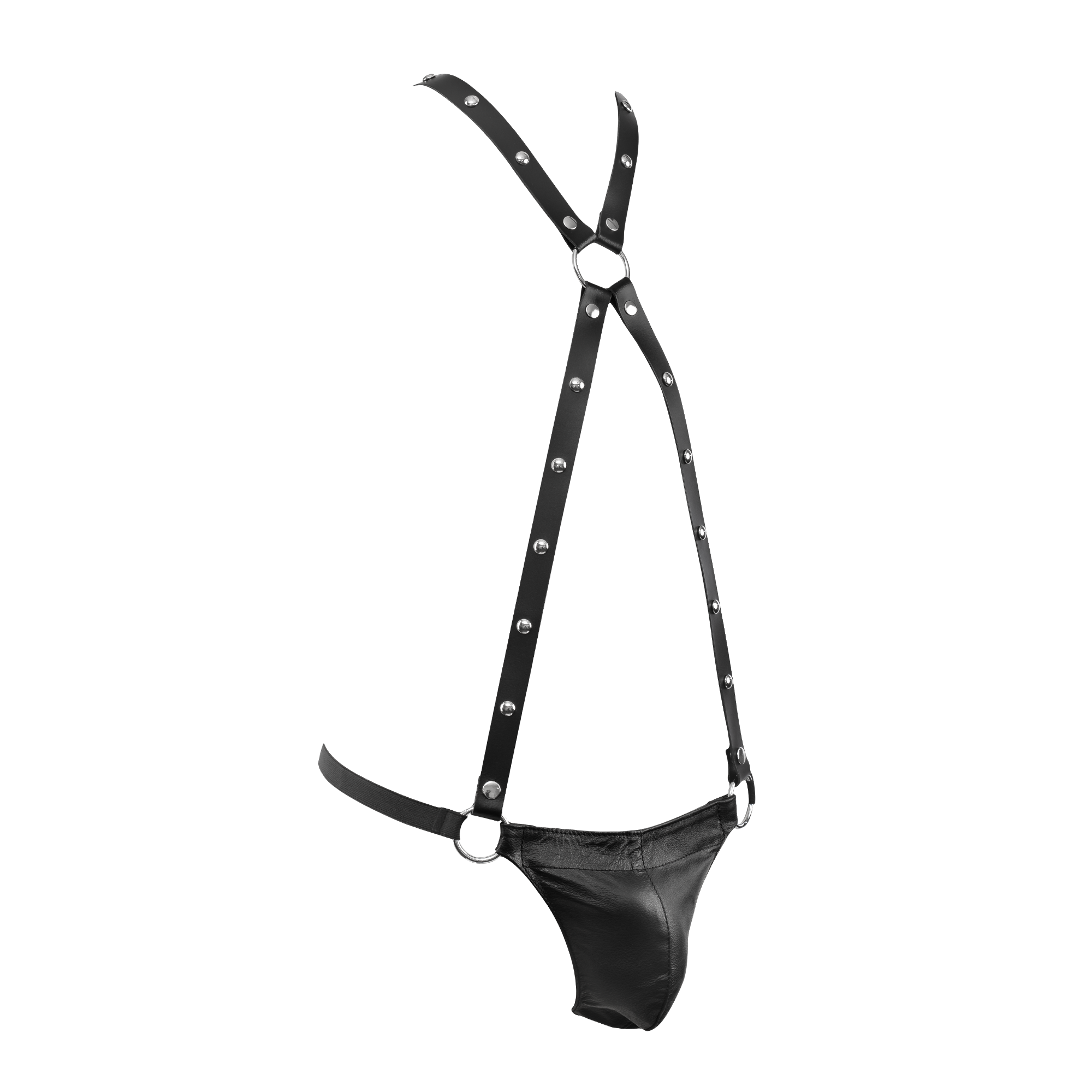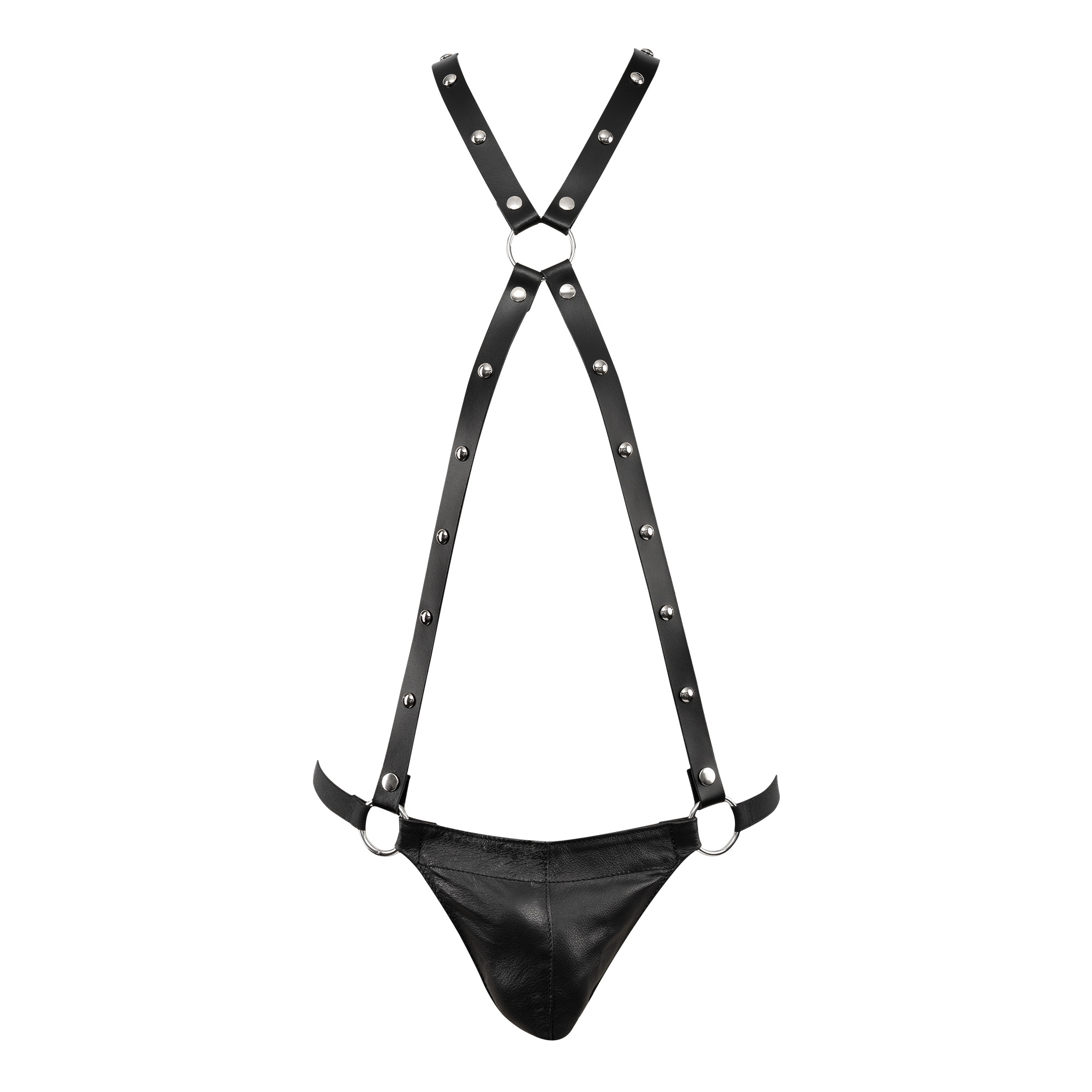 Rimba Bondage Play – Leder-Körperharness mit Slip – Schwarz