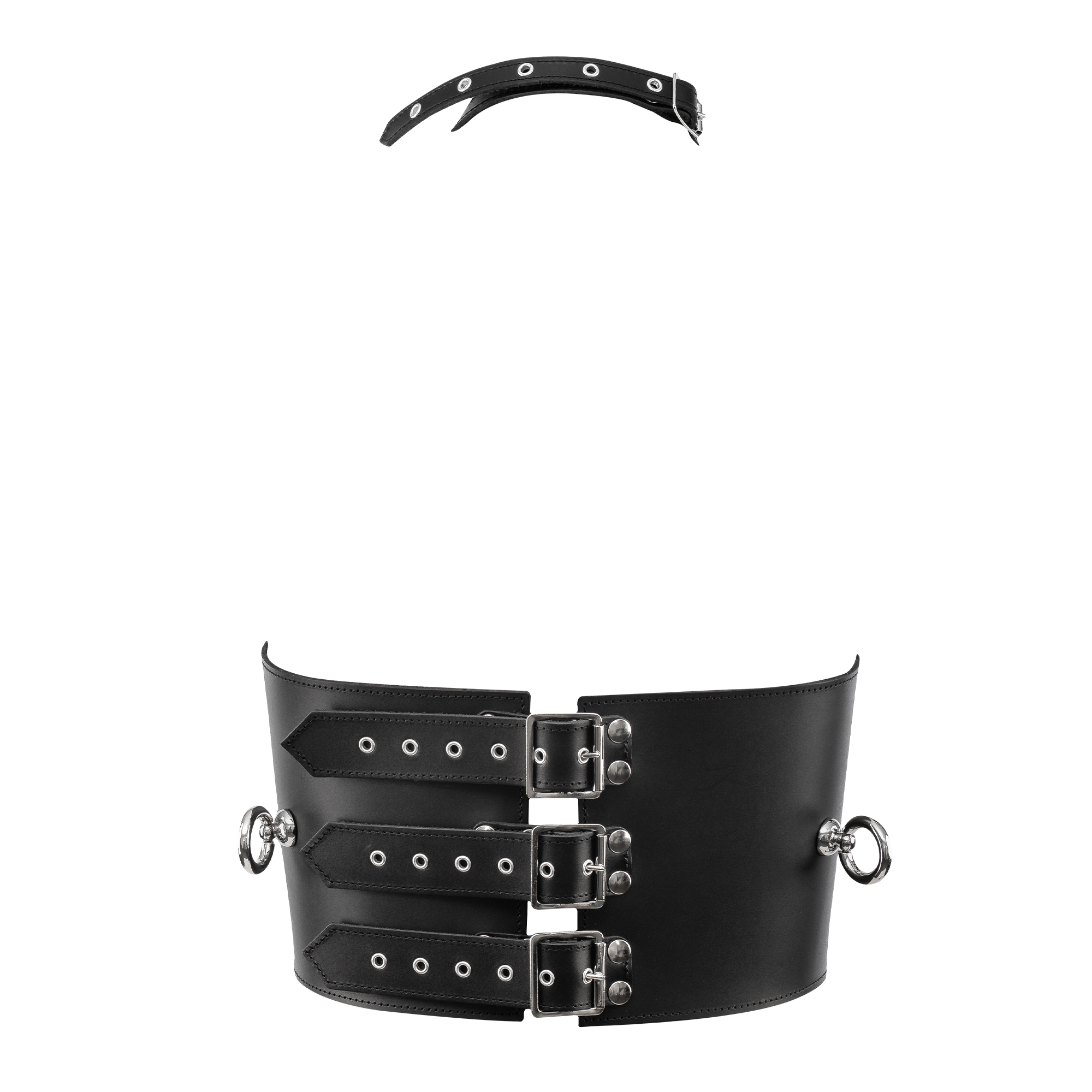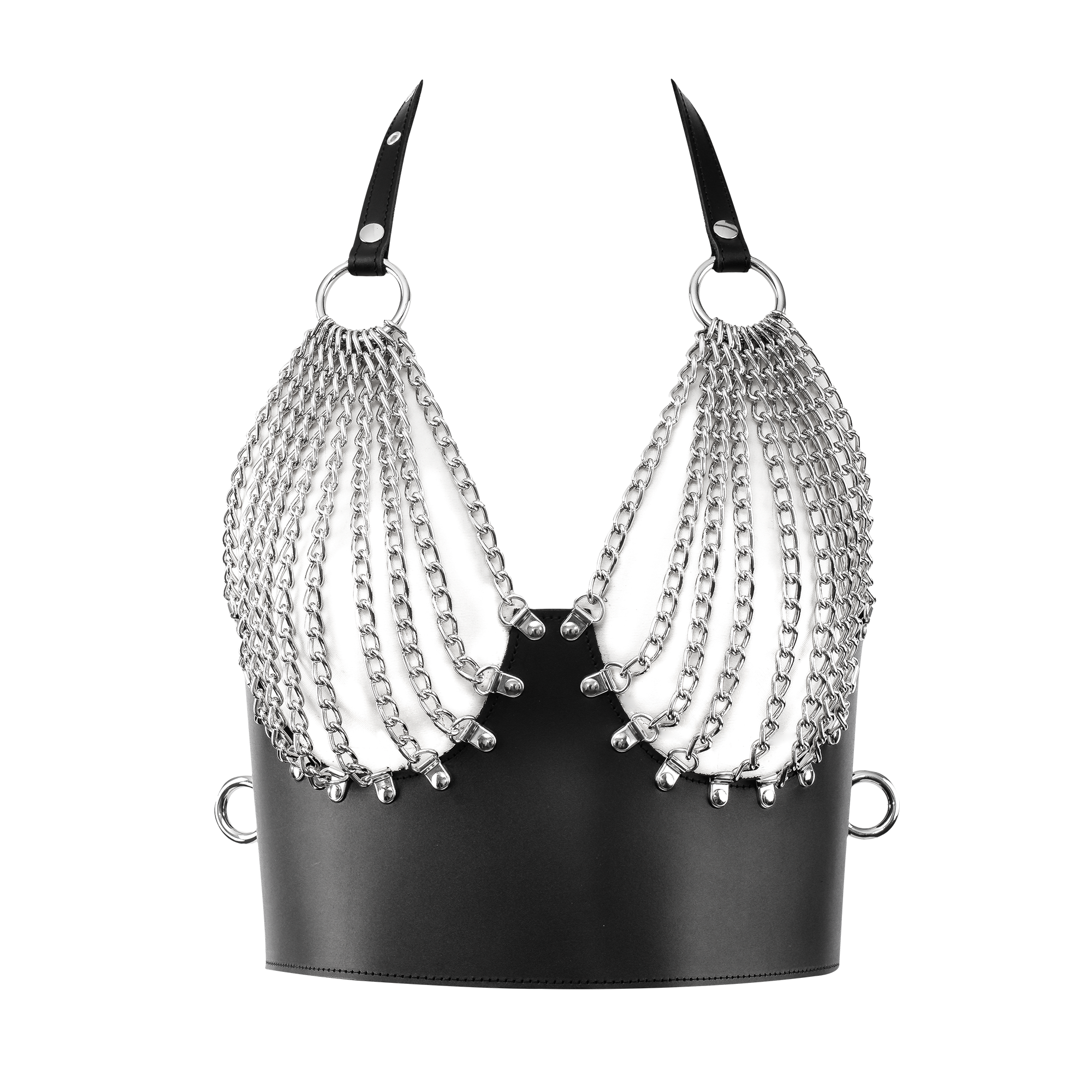 Rimba Bondage Play – Leder-Bustier mit Ketten – Schwarz & Silber