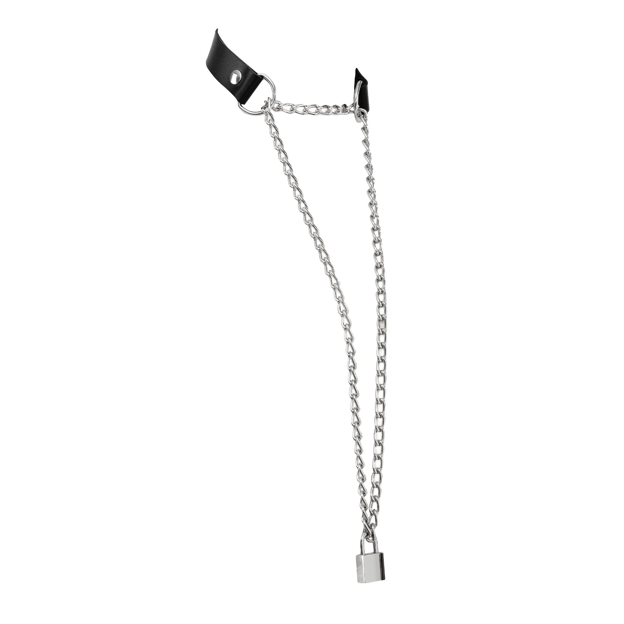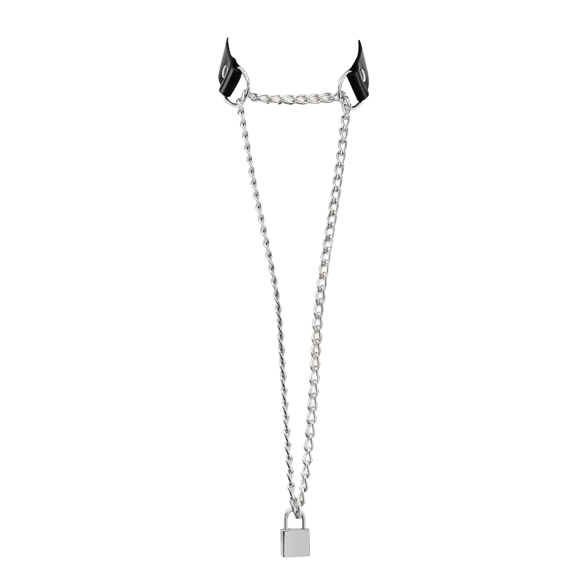 Rimba Bondage Play - Collar de Estrangulamiento de Cuero con Candado - Negro y Plateado