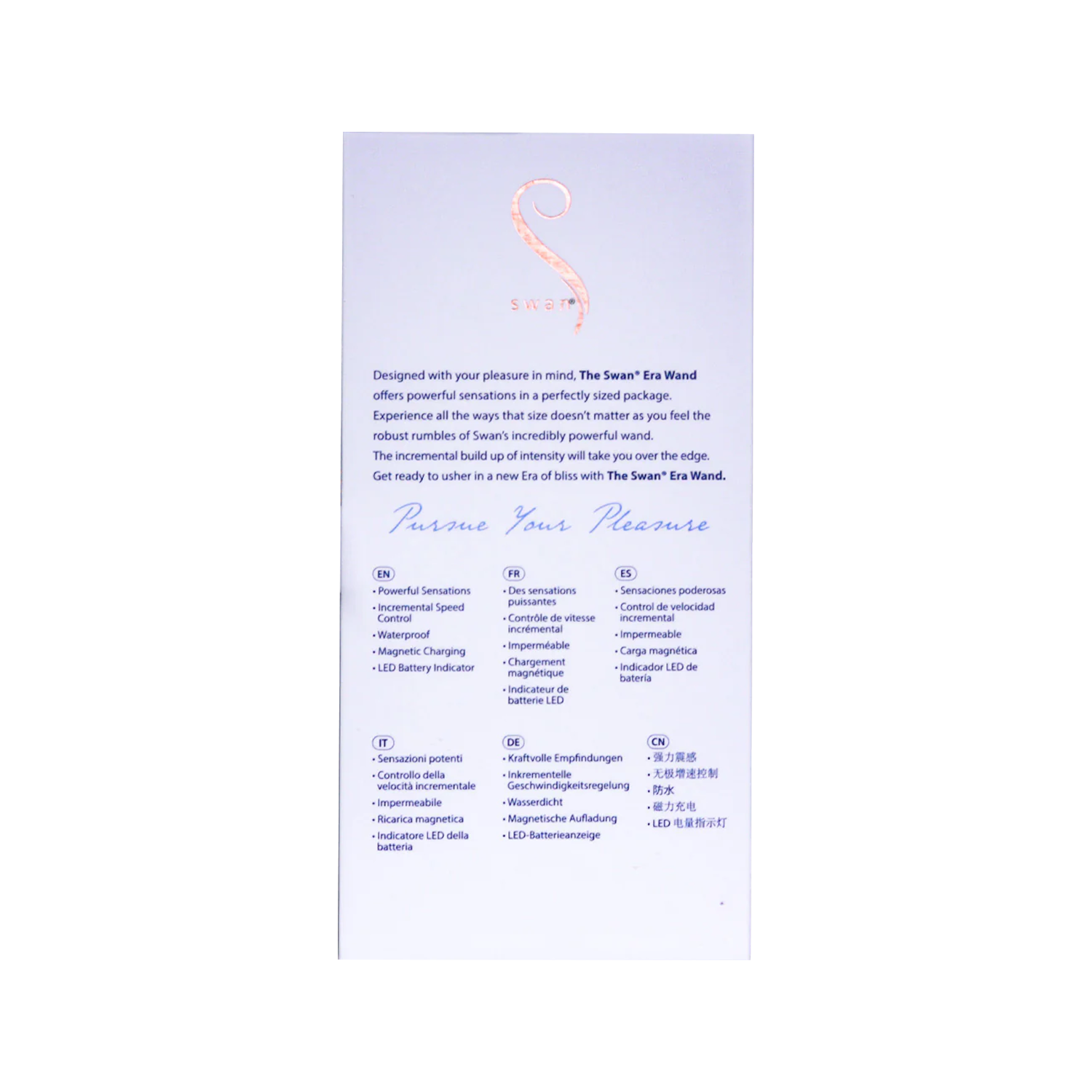 With the Swan Era® Wand, compact power is always at your fingertips—small enough to be discreetly carried, powerful enough to tantalize your senses.