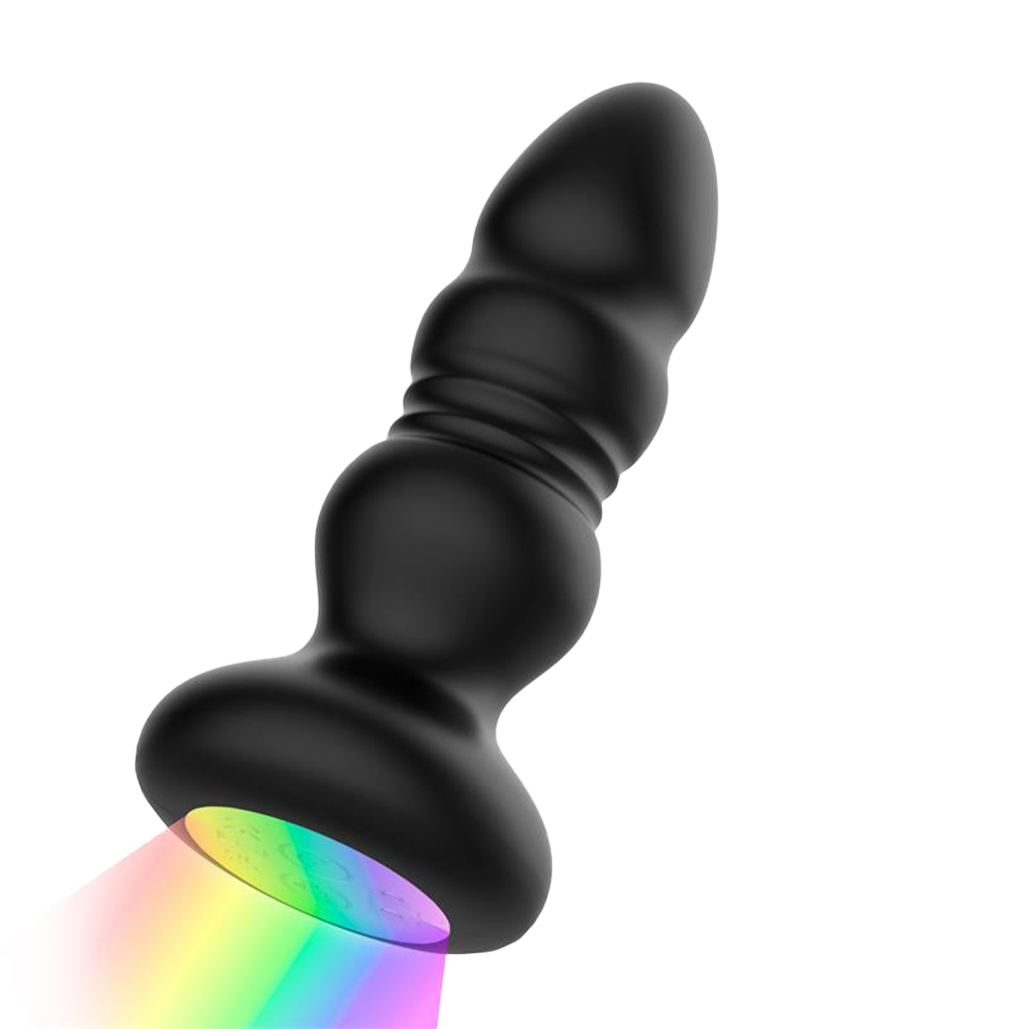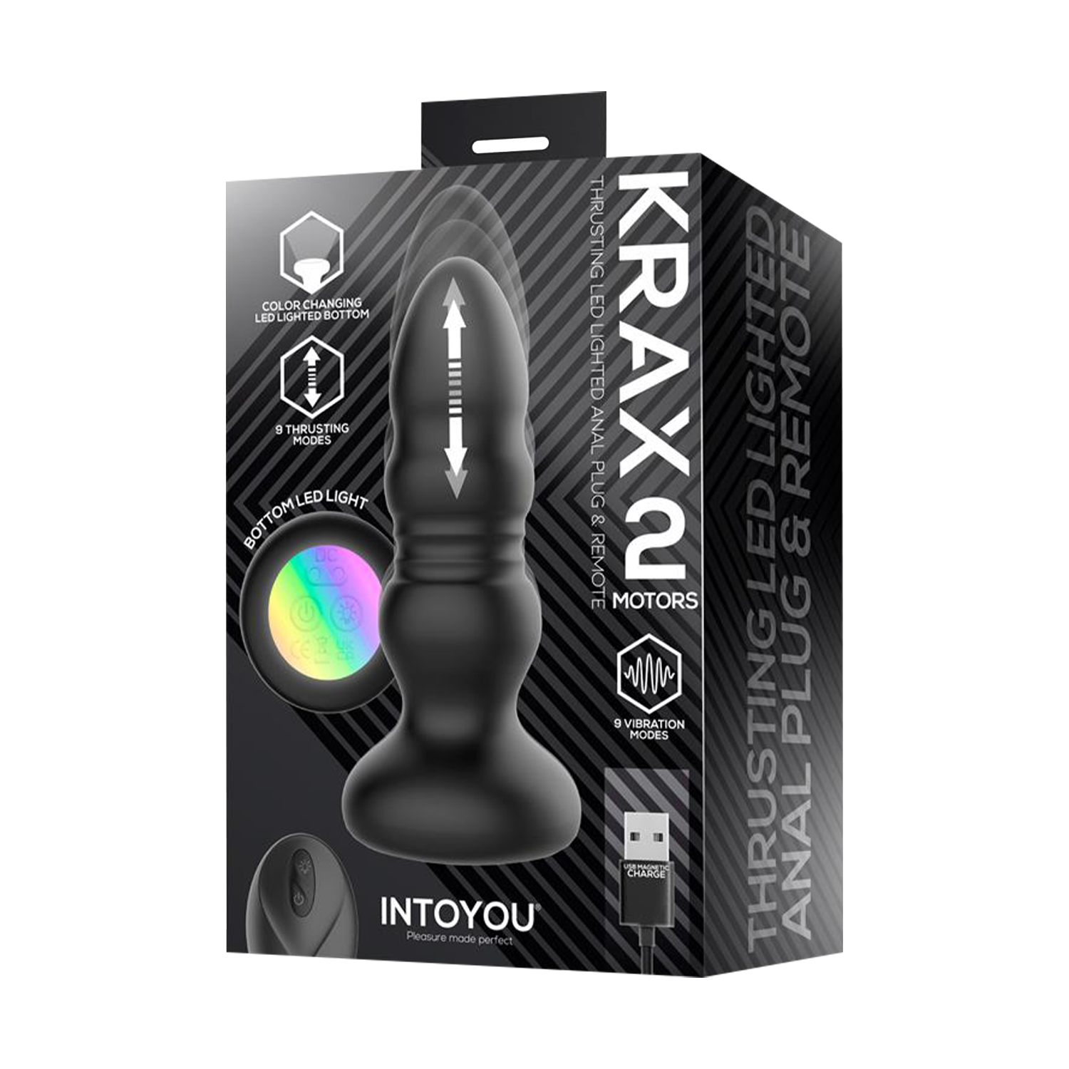 IY - Krax - Butt Plug with Vibration, Thrusting, LED Light, and Remote Control - Black