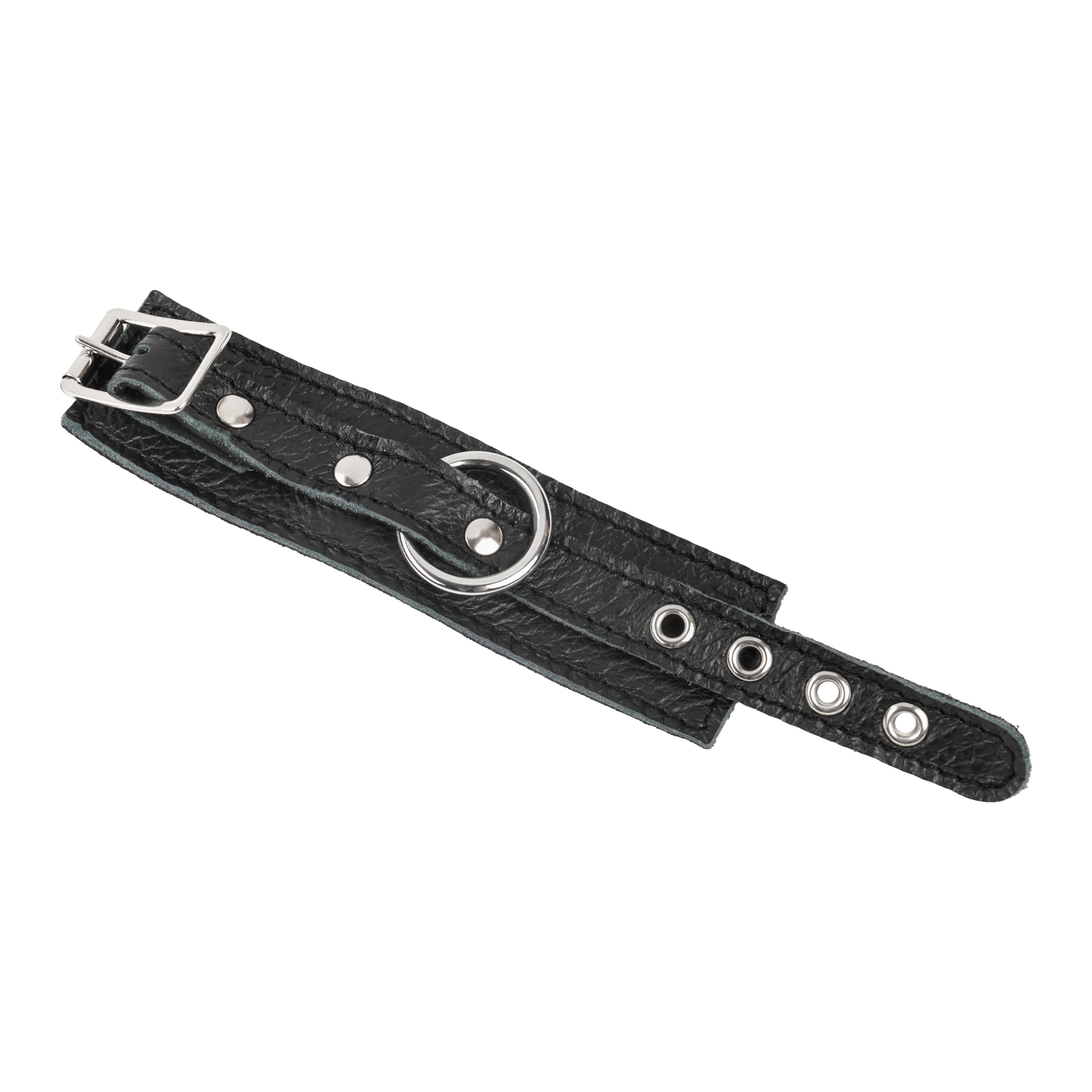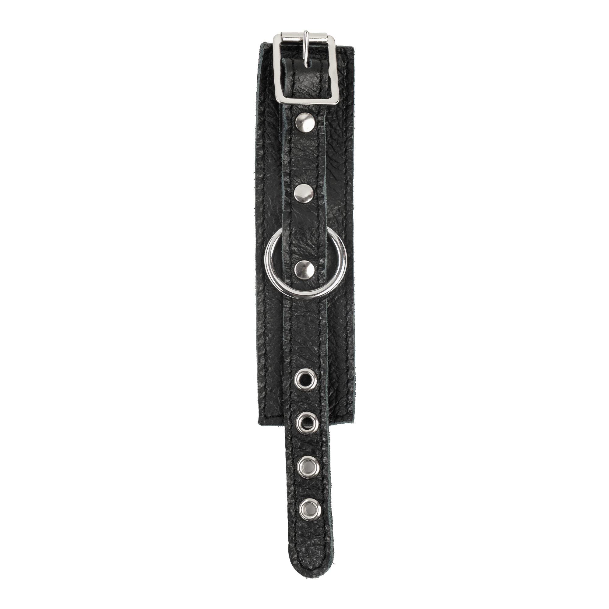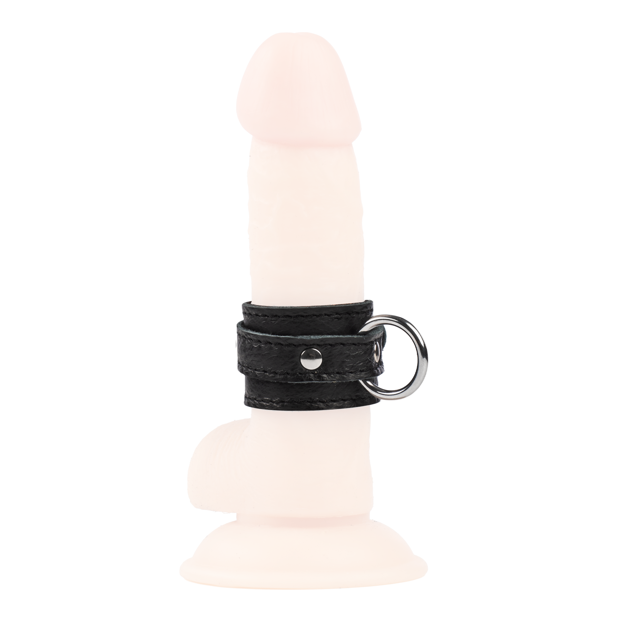 This penis cuff is handmade from genuine nappa leather and has a soft suede lining. It is finished with a metal buckle and attachment ring (Ø20 mm).