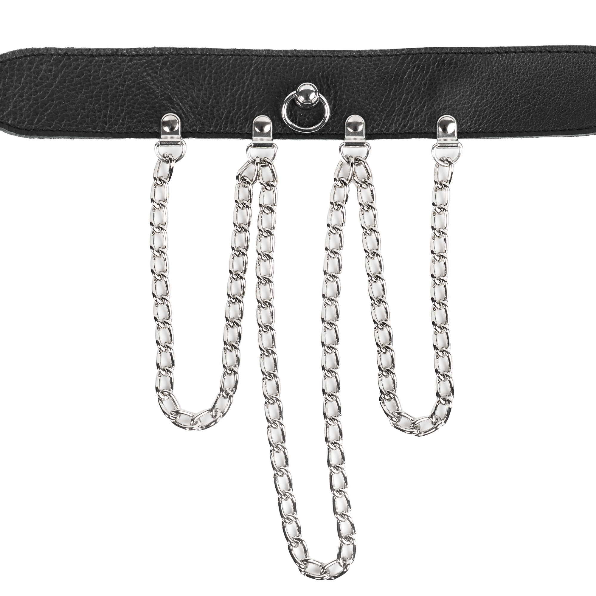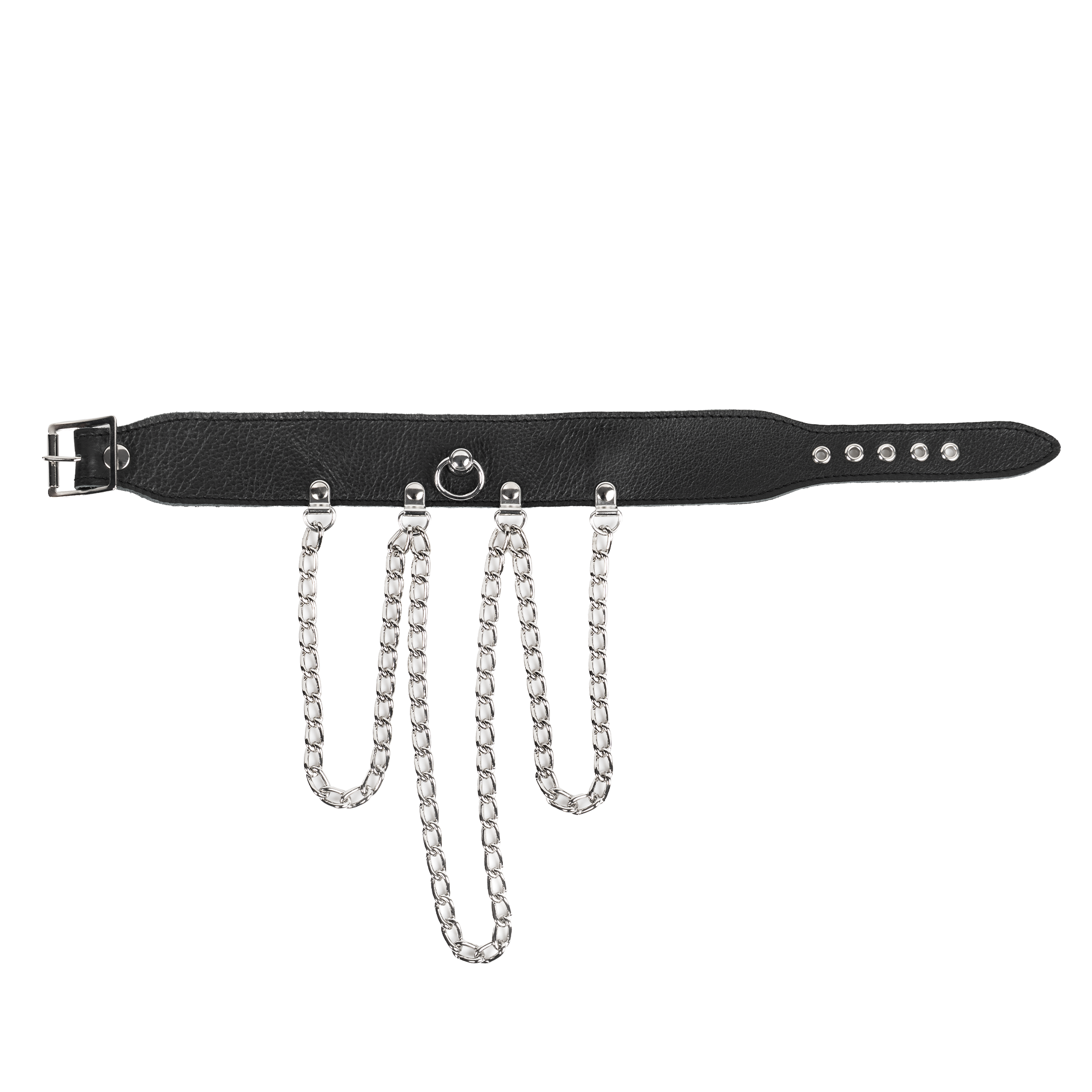 Rimba Bondage Play - Collar with Chains - Black & Silver