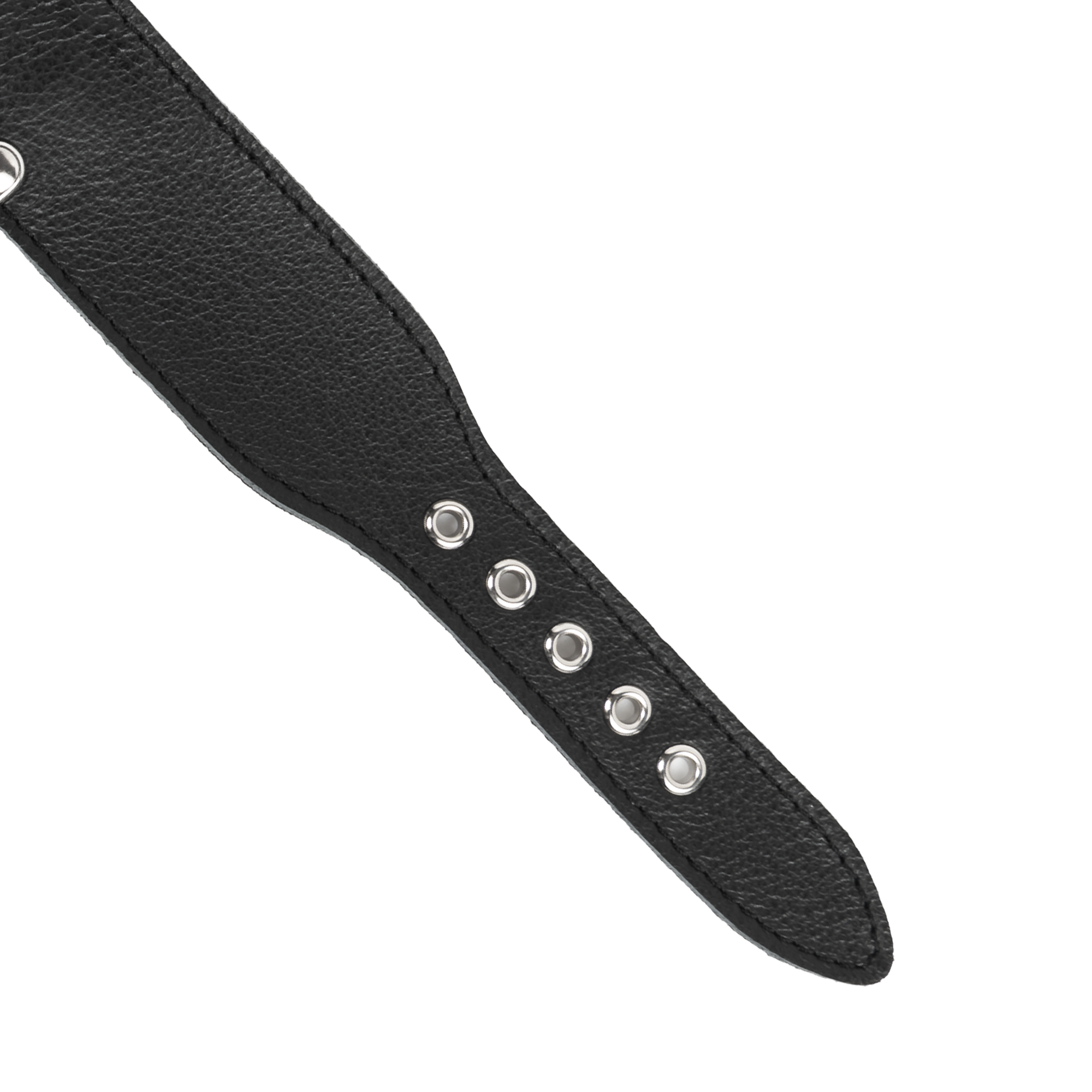 This collar is handmade from genuine nappa leather with a soft suede lining.