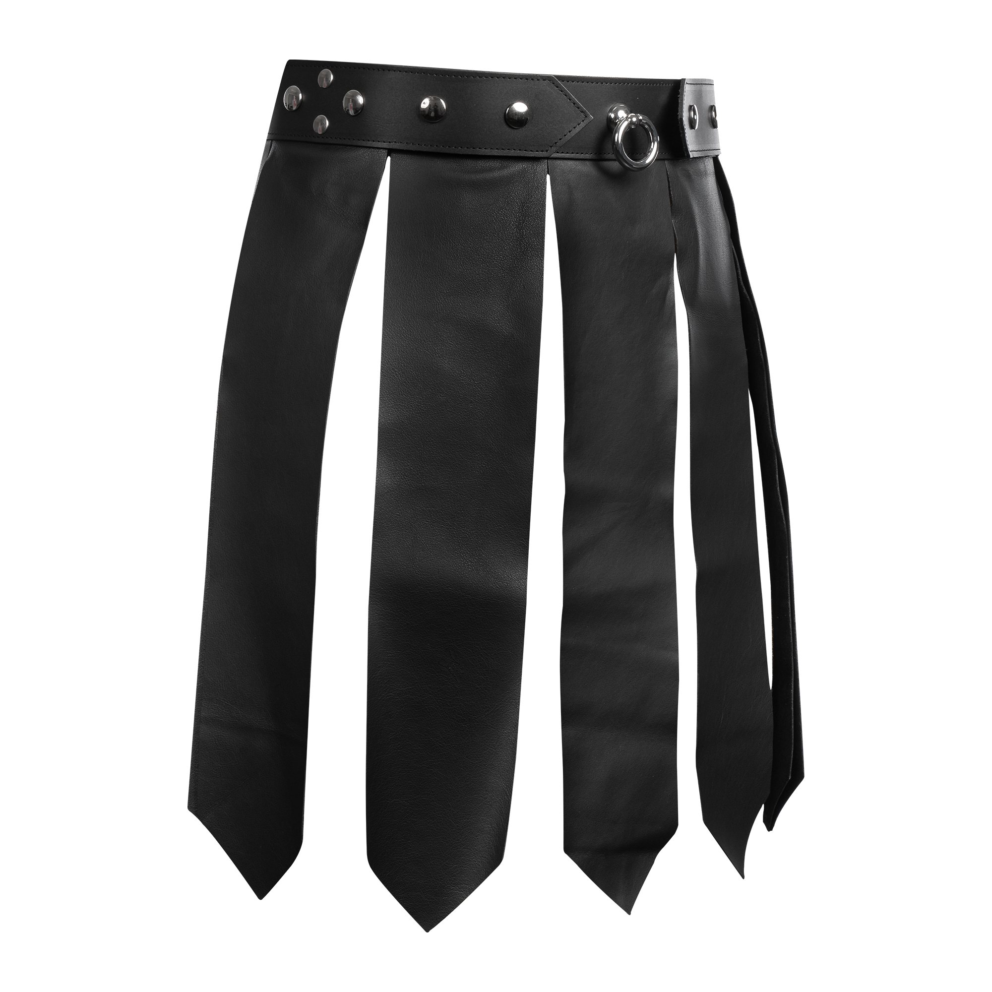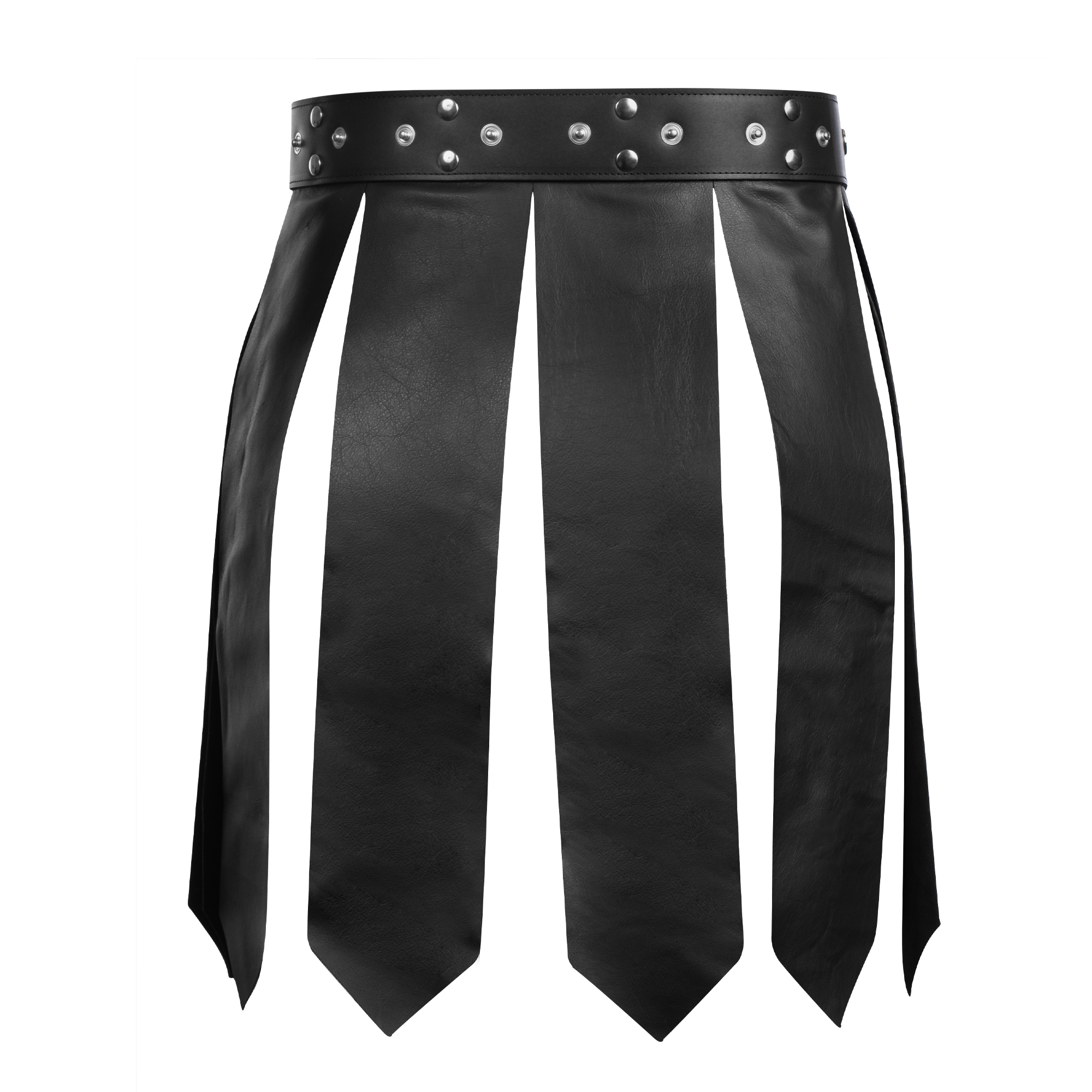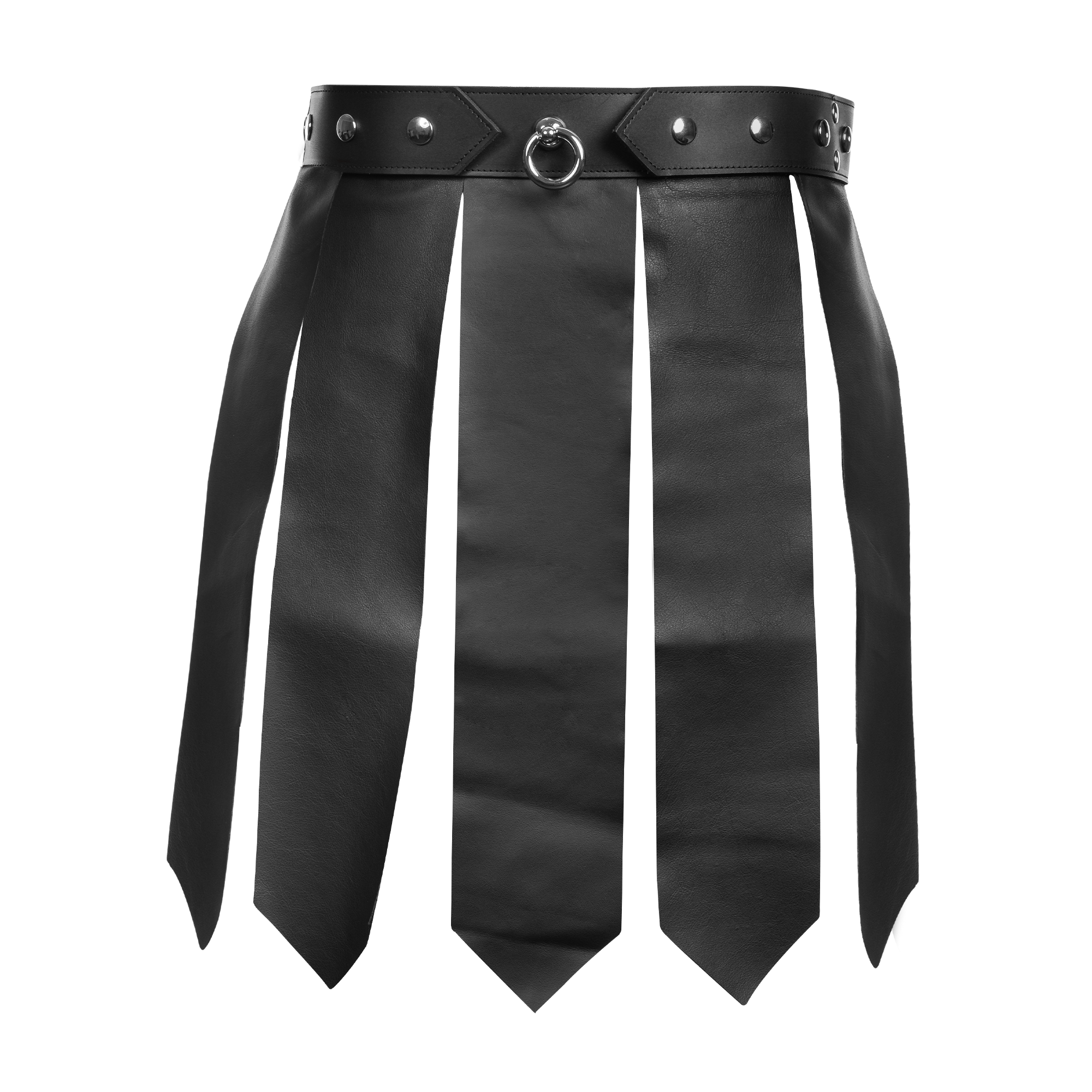Esta falda para hombre estilo gladiador está hecha a mano con lujoso y resistente cuero napa y cuenta con un cinturón de resistente cuero de silla de montar.