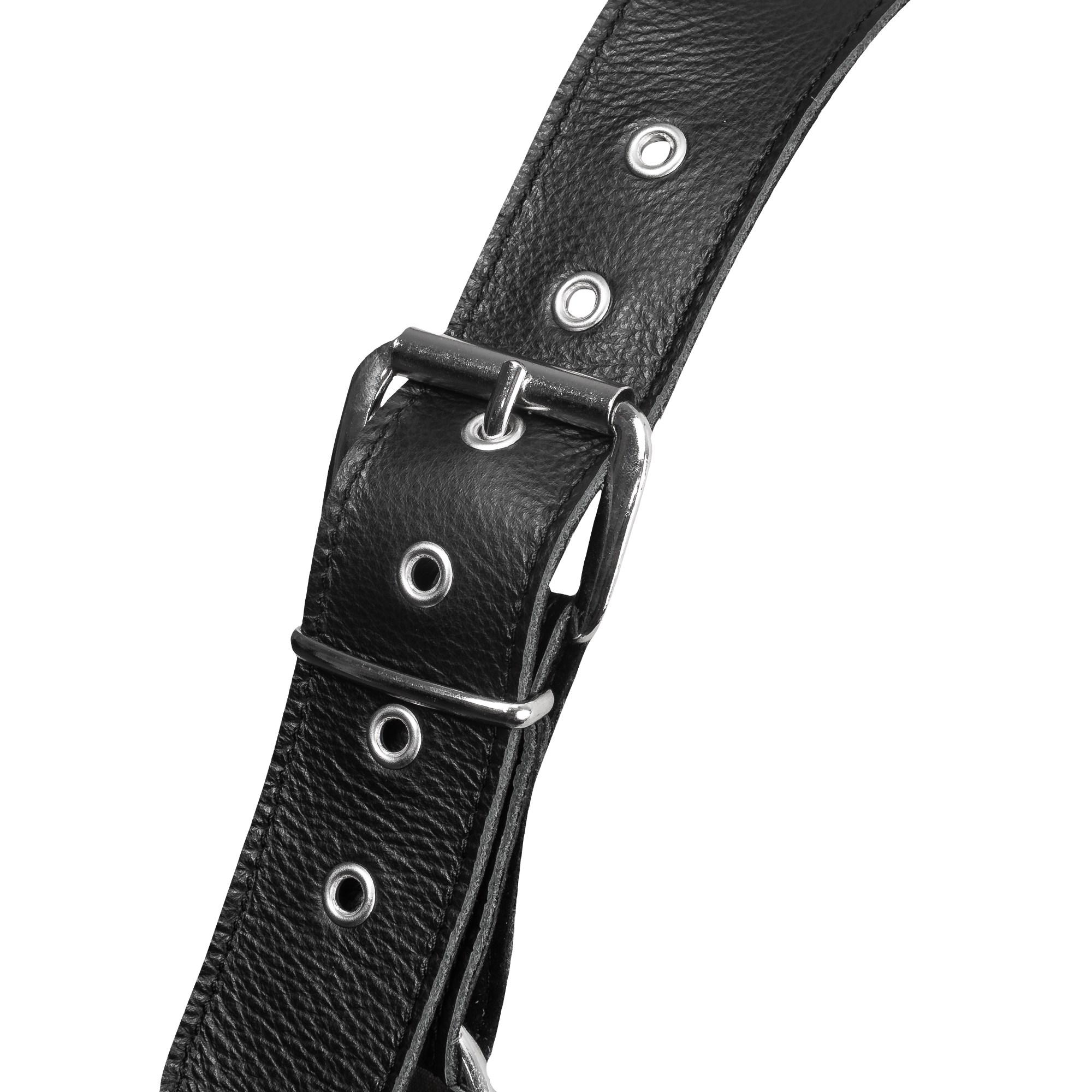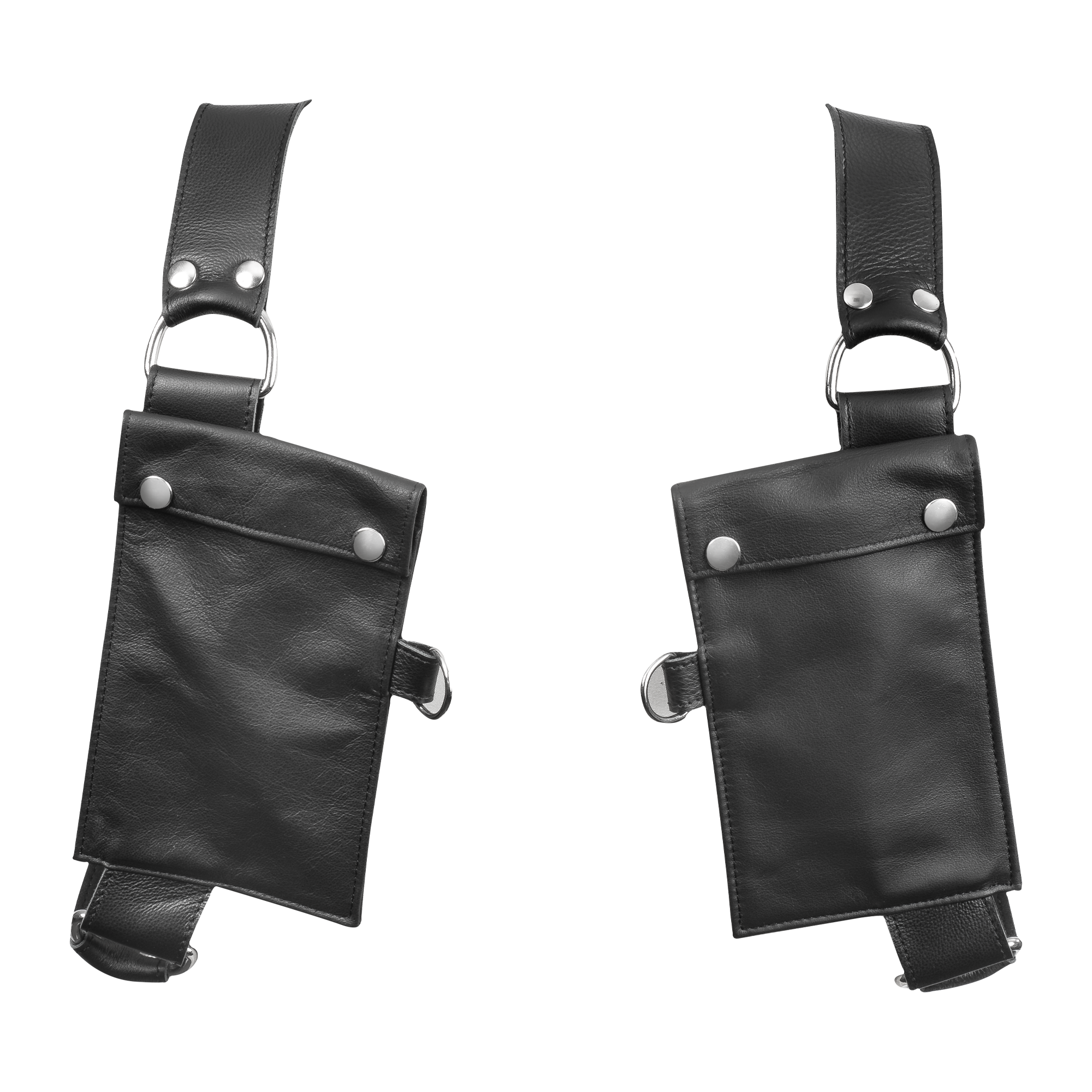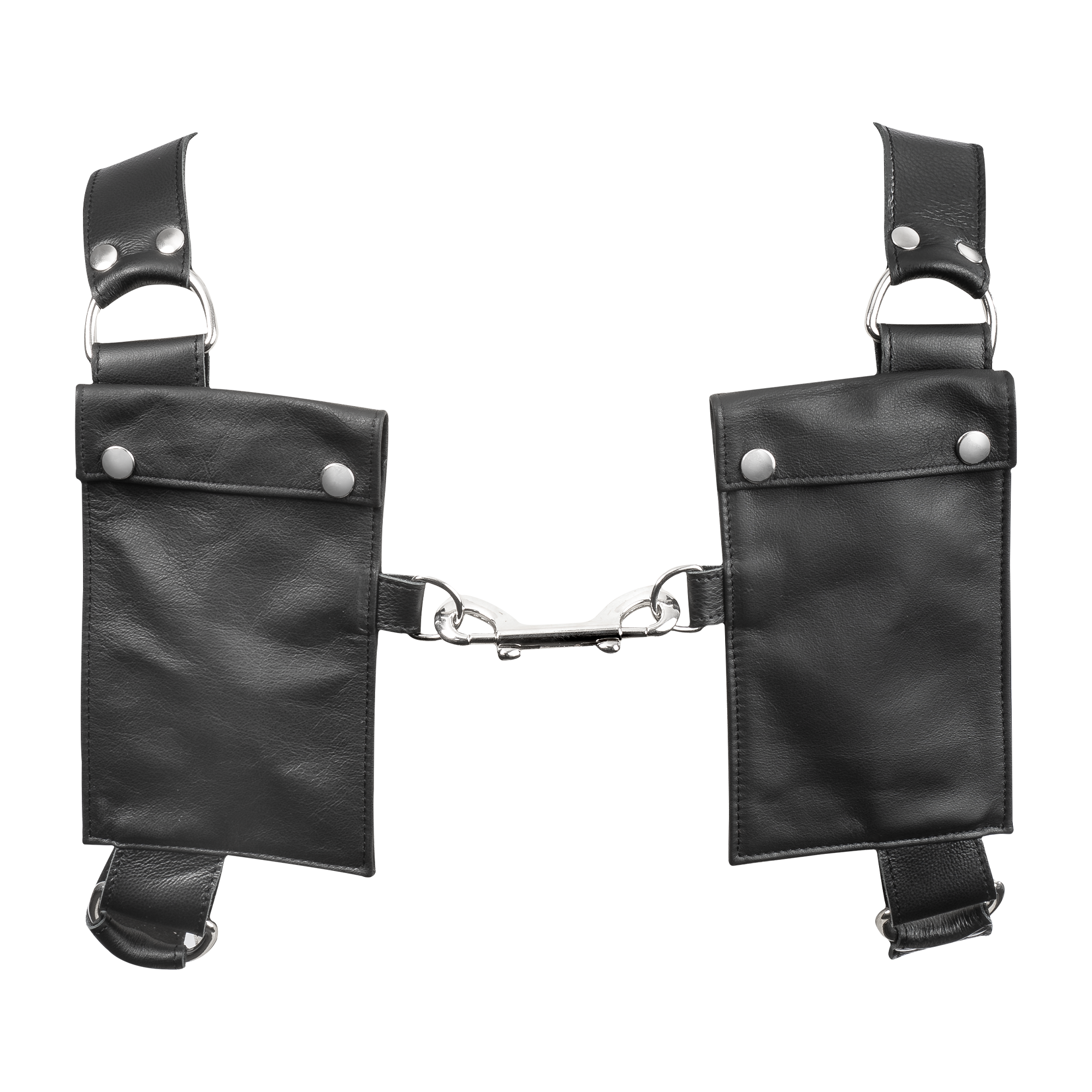 Rimba Bondage Play - Arnés de pecho de cuero de lujo con bolsillos - Negro