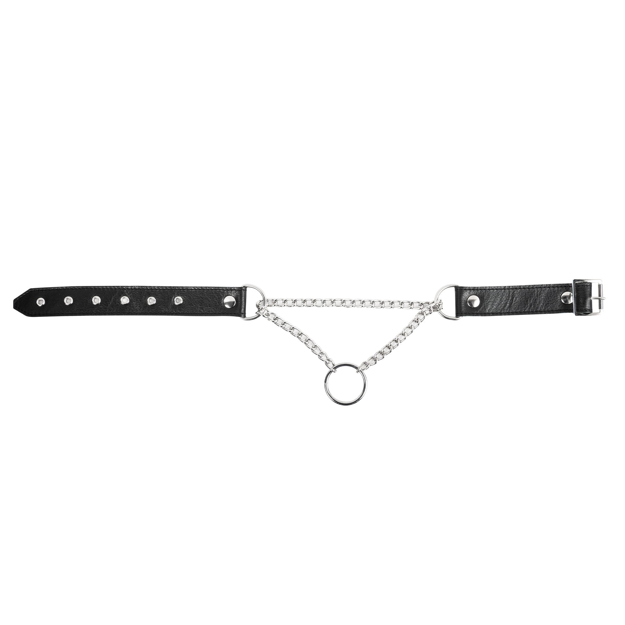 Rimba Bondage Play - Lederen Wurghalsband met O-ring - Zwart & Zilver