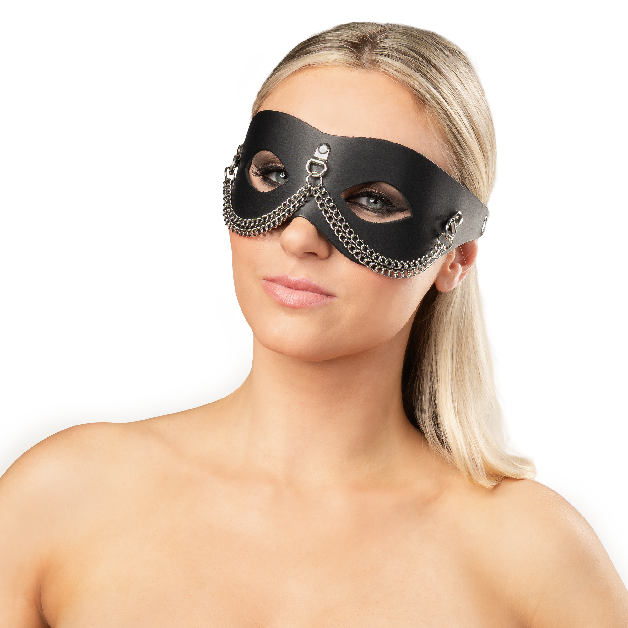 Rimba Bondage Play - Lederen Masker met Kettingdecoratie - Zwart & Zilver