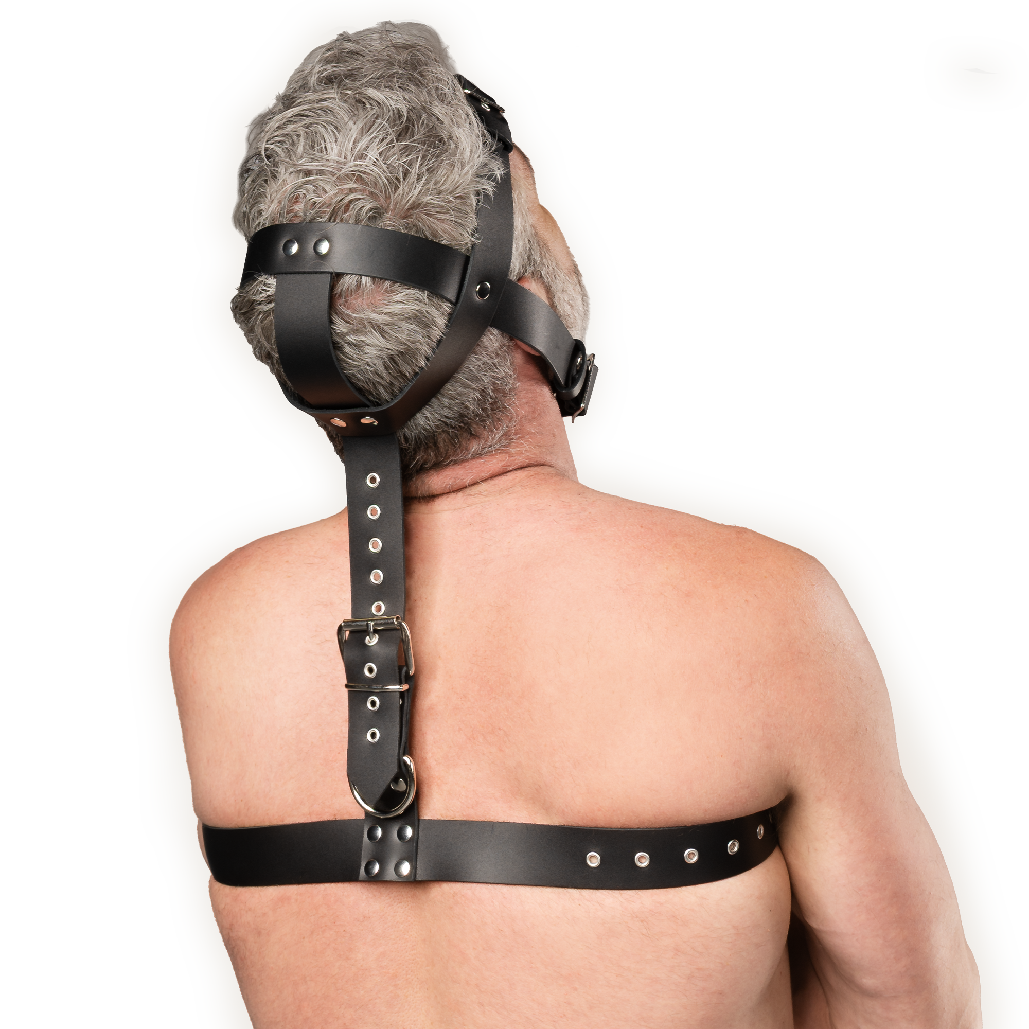 Dit harnas is handgemaakt van echt, stevig tuigleder en bestaat uit een hoofdharnas en een borstriem.