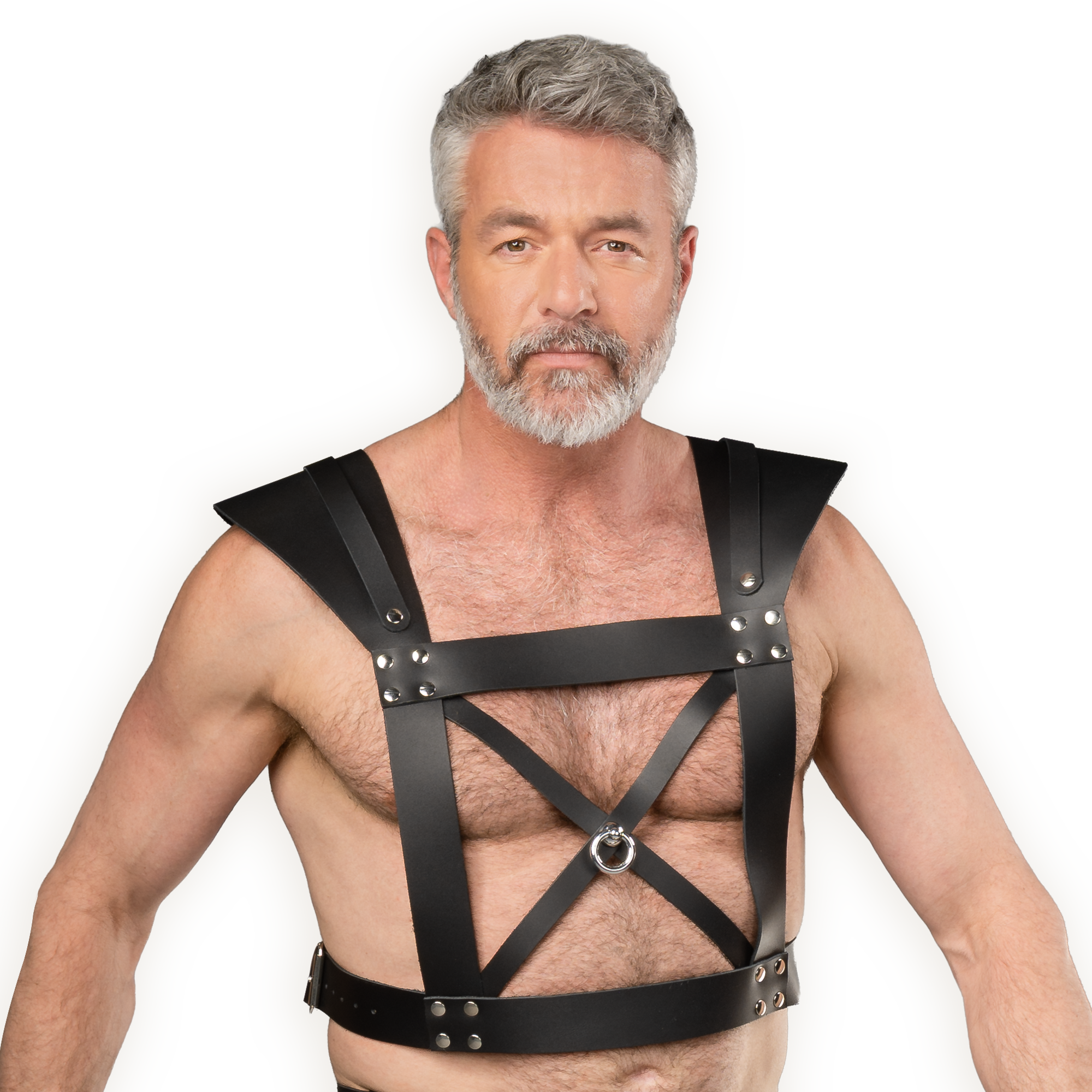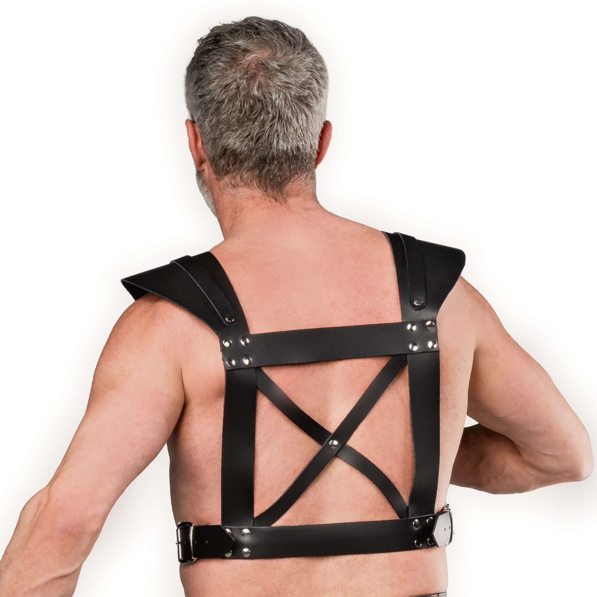 Dit harnas in gladiatorstijl is handgemaakt van echt, stevig tuigleder.