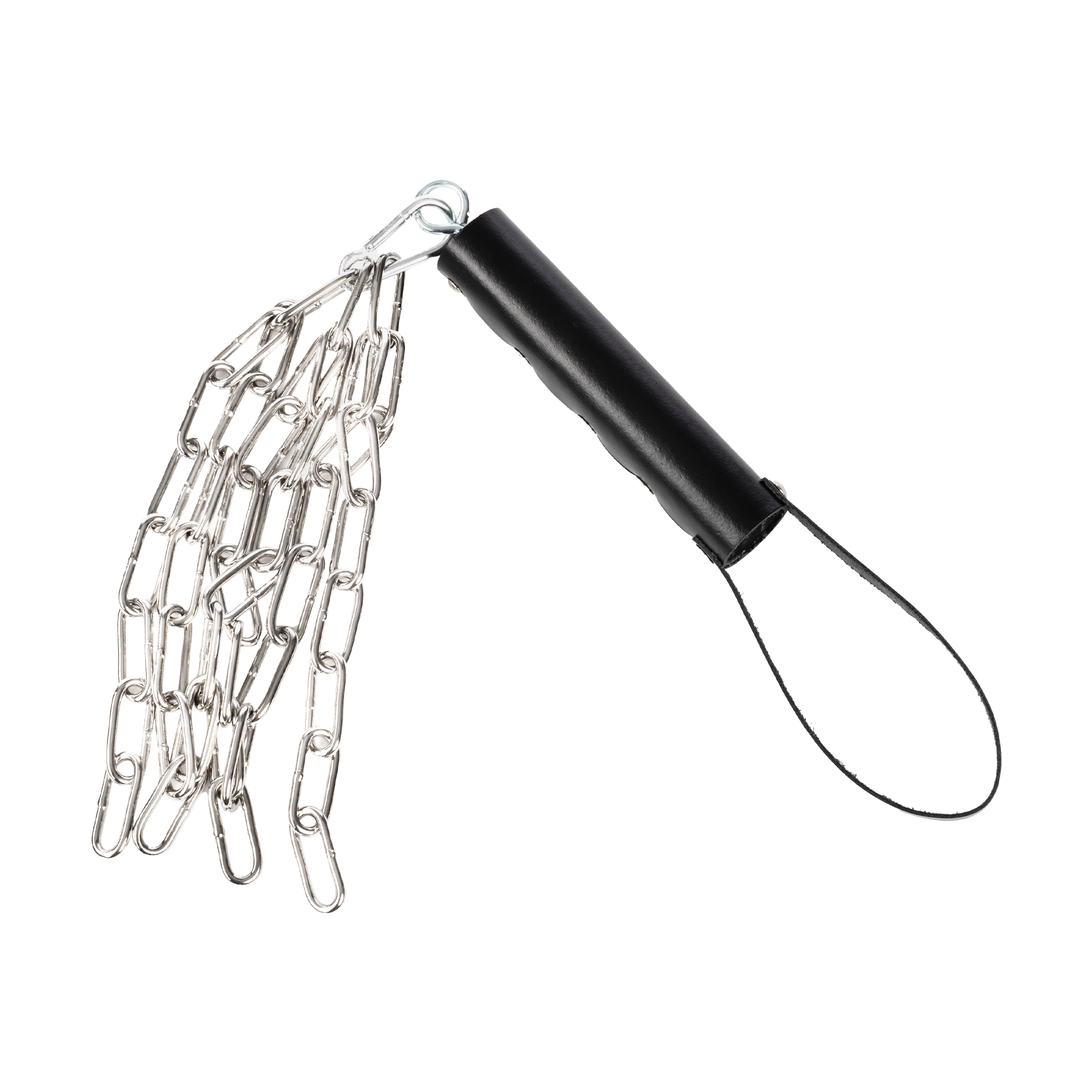 Lederen zweep met zware metalen ketting.