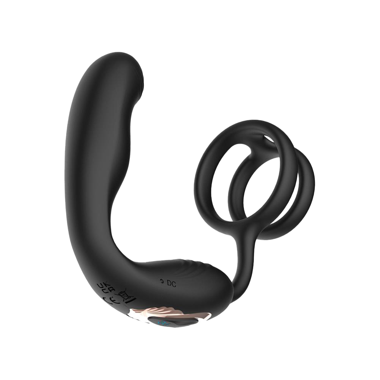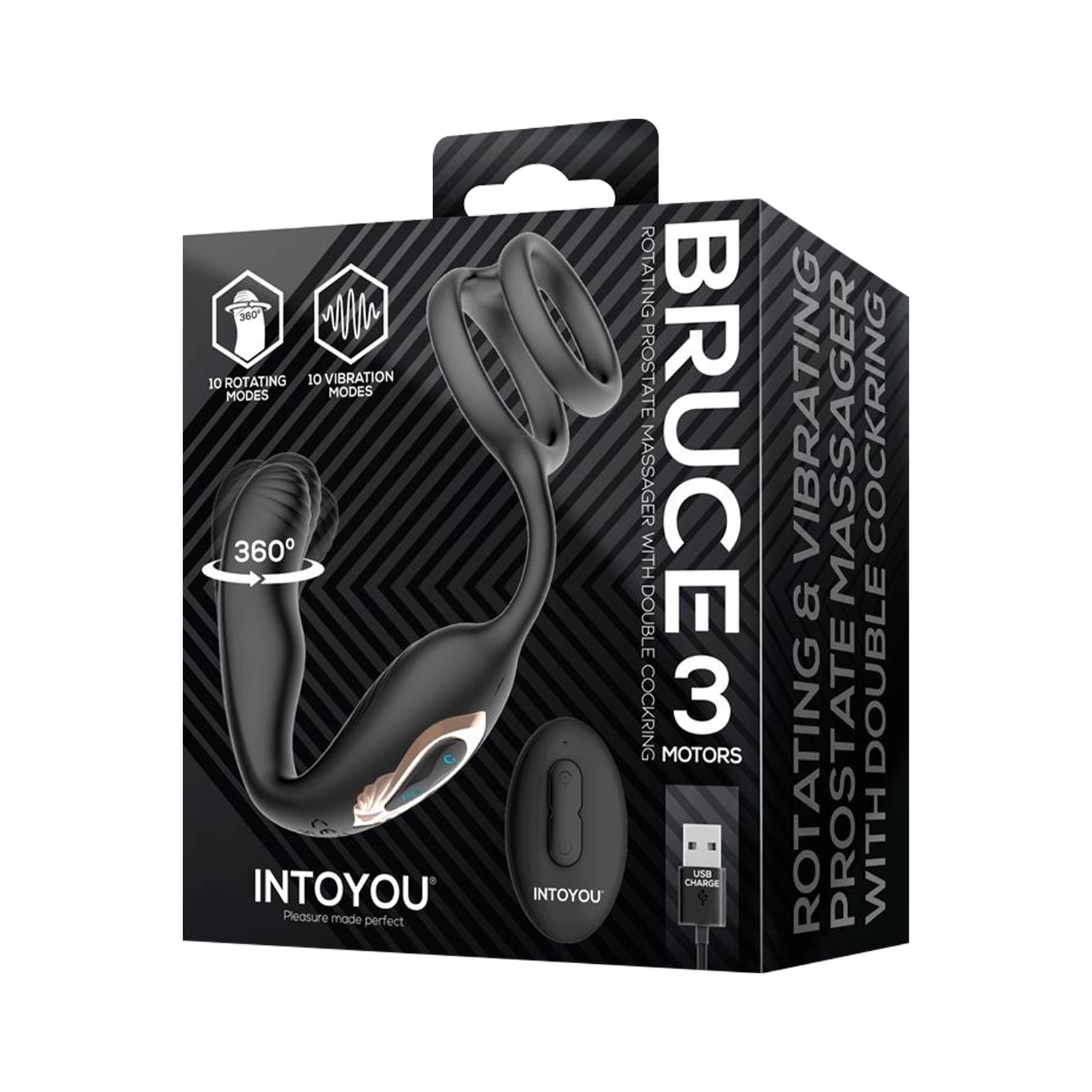 IY – Bruce – Prostatamassagegerät 360° mit doppelter Penisring-Vibration – Schwarz