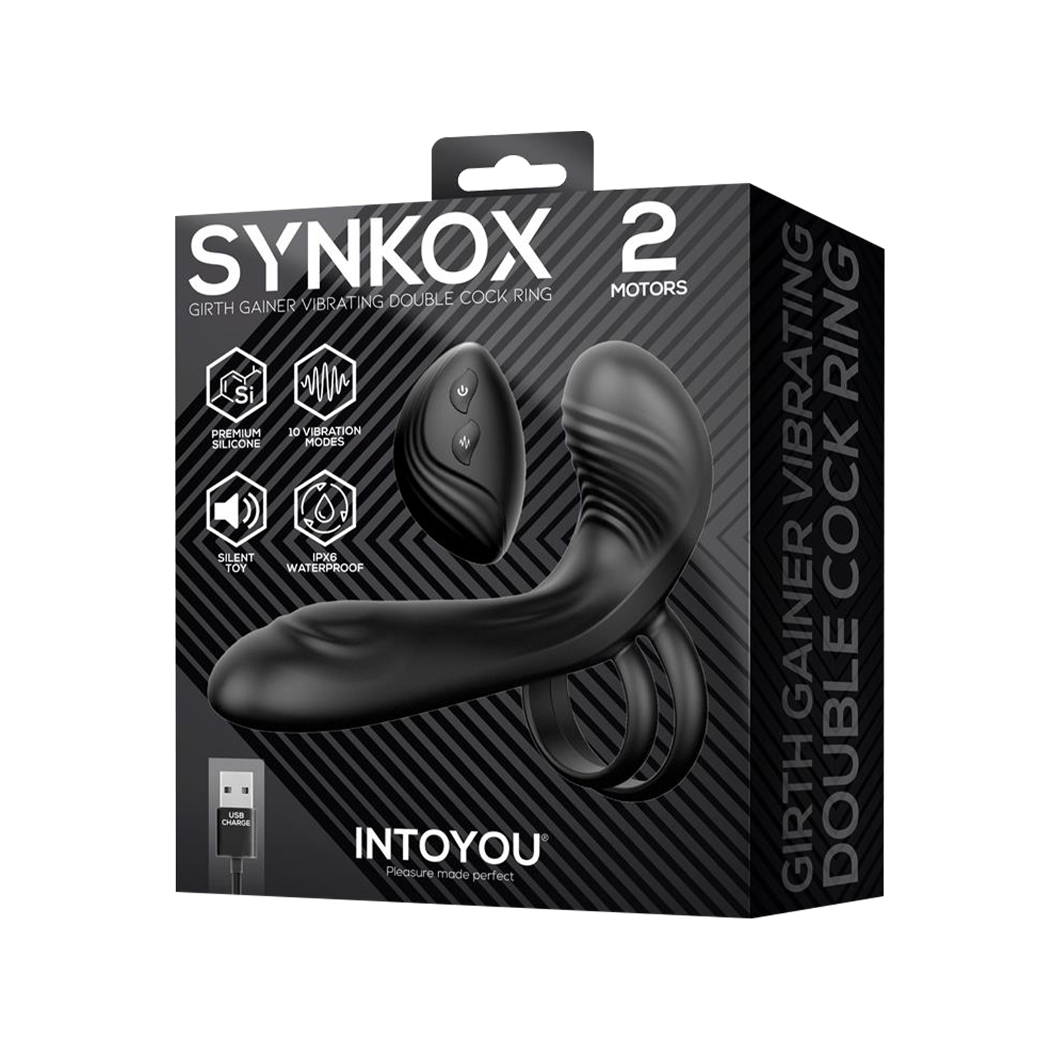 IY – Synkox – Girth Gainer Vibrierender Doppel-Penisring mit Fernbedienung – Schwarz