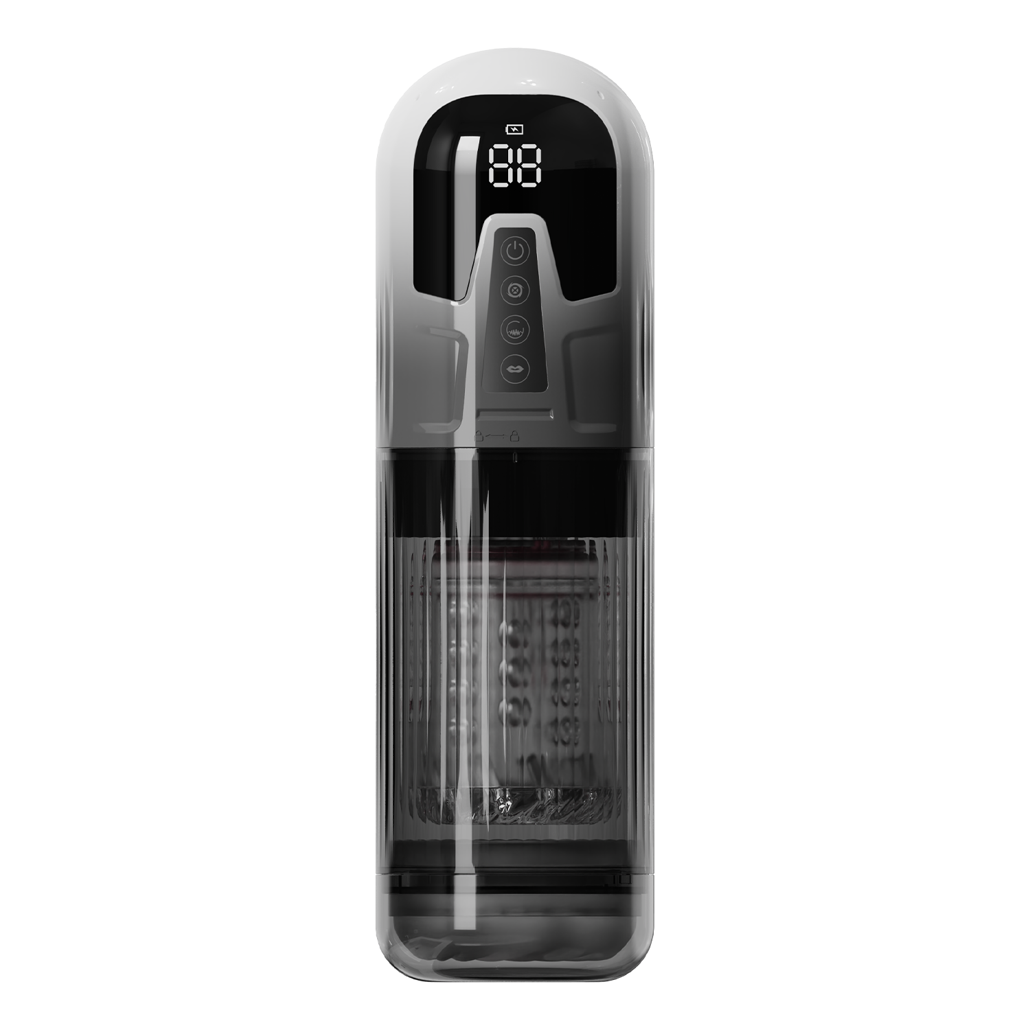Dank des transparenten Designs können Sie jede Bewegung beobachten, während das leistungsstarke 4-in-1-Stimulationssystem für ein intensives, tiefes und absolut immersives Gefühl sorgt.