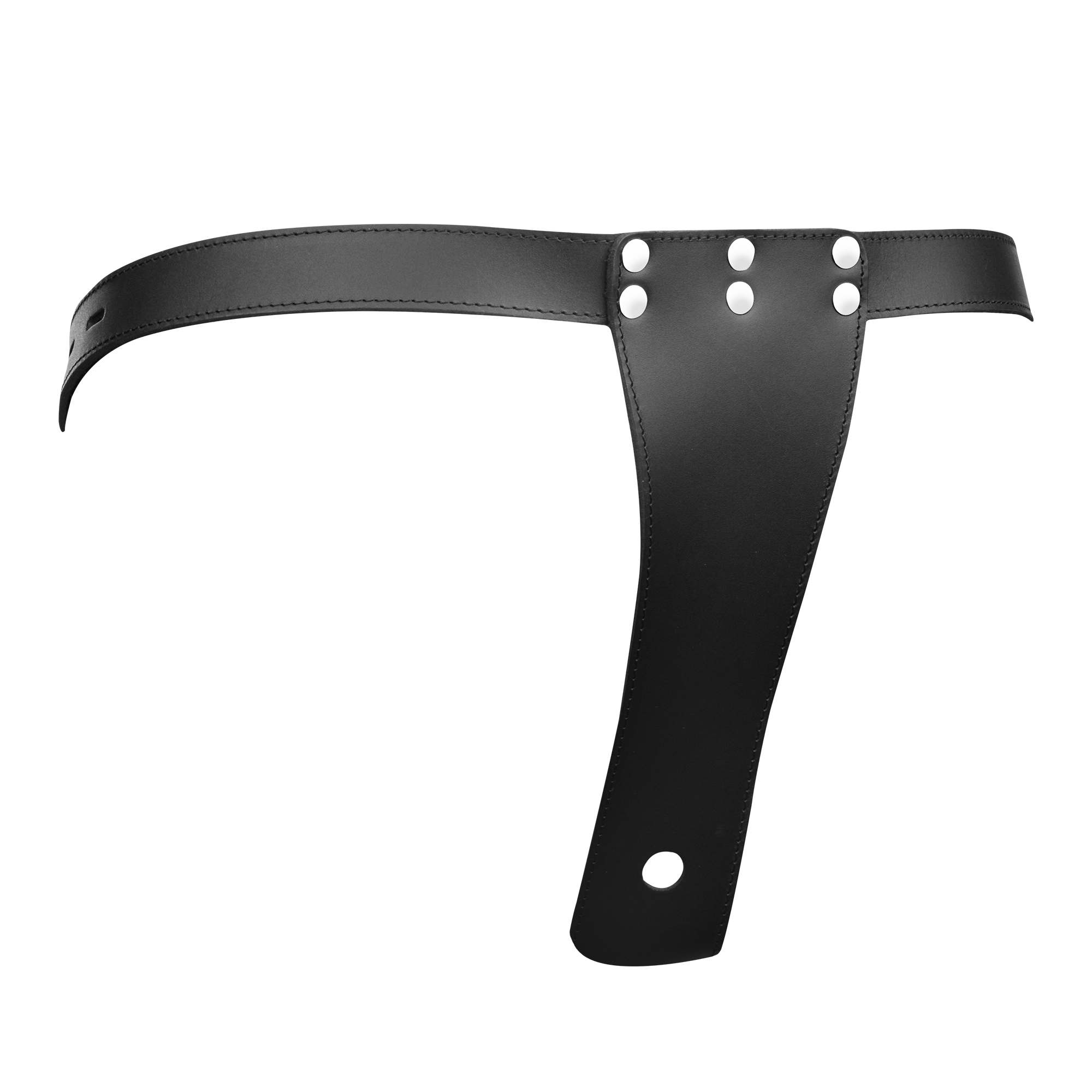 Dieser Slip ist handgefertigt aus robustem, aber weichem Sattelleder und hat vorne eine Öffnung für Hoden und Penis.