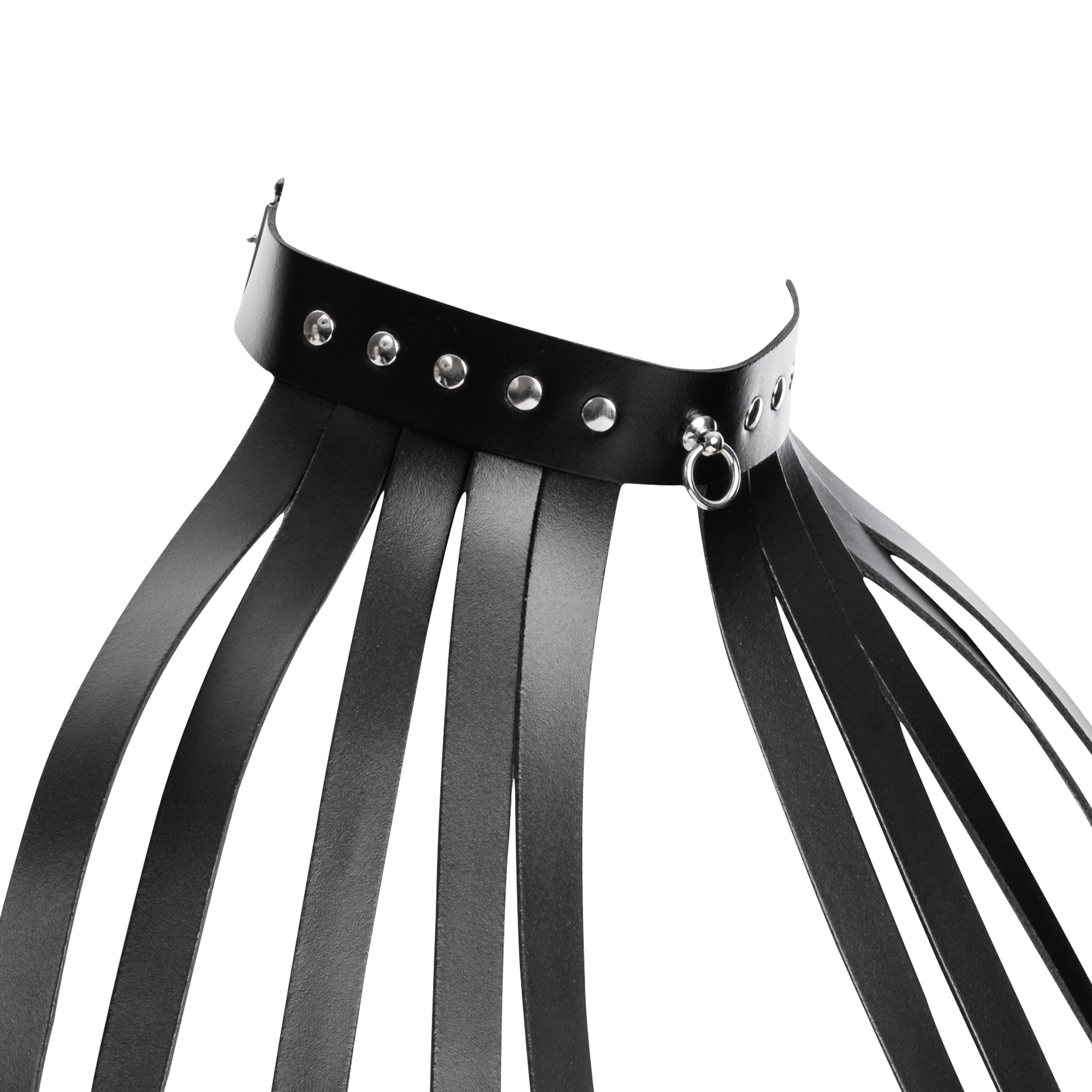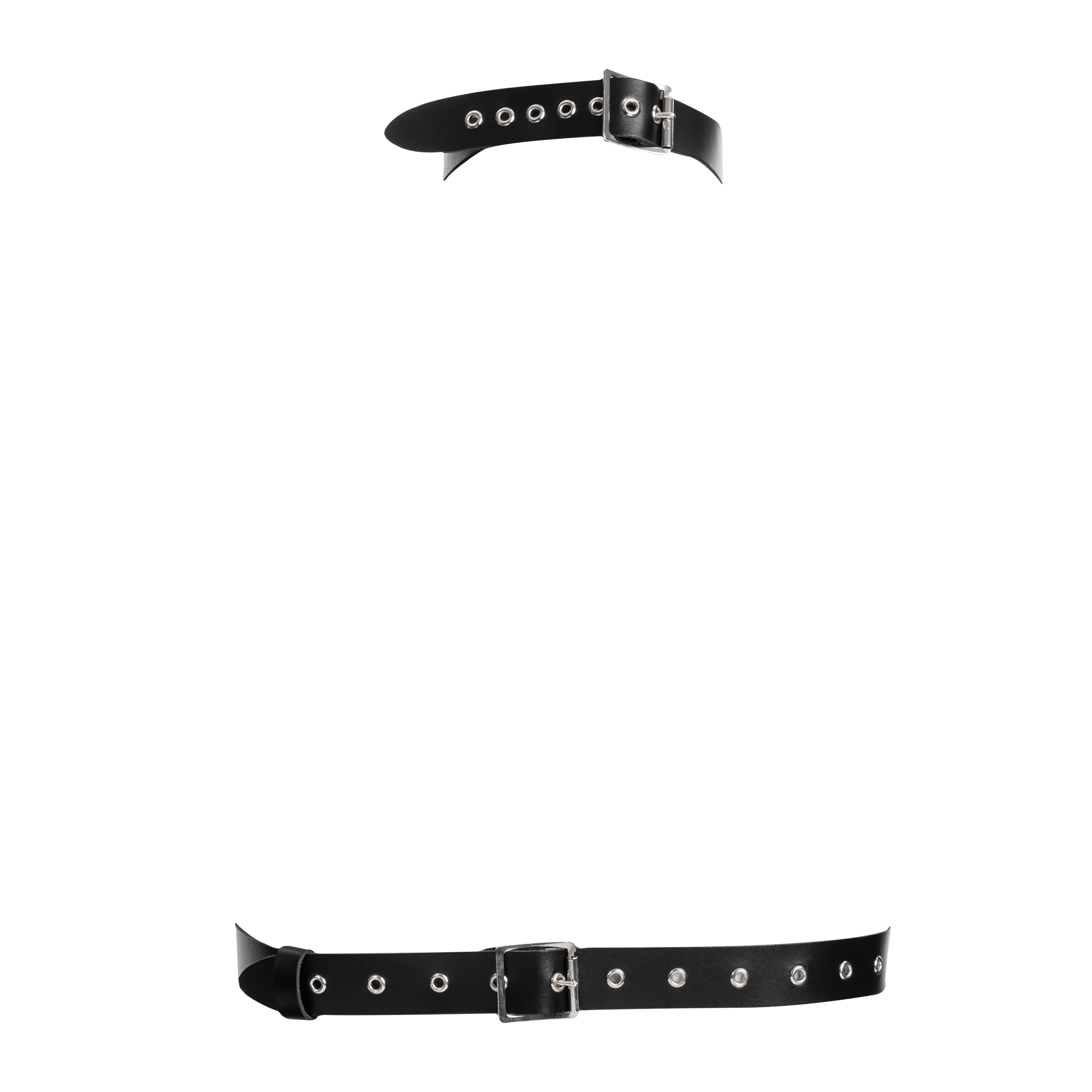 Rimba Bondage Play - Leather Chest Harness with Collar- Black