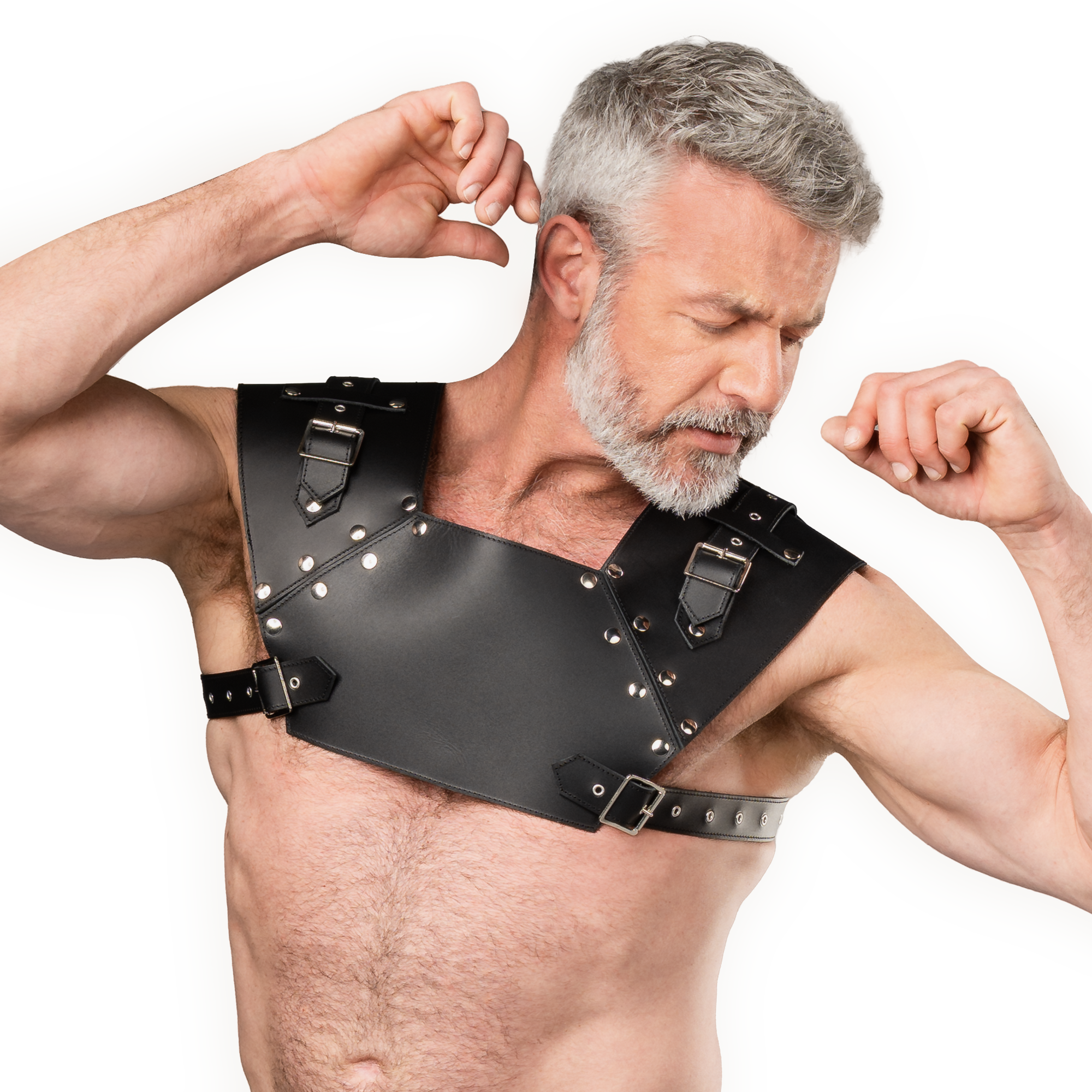 This gladiator-style harness is handmade from genuine, sturdy saddle leather.