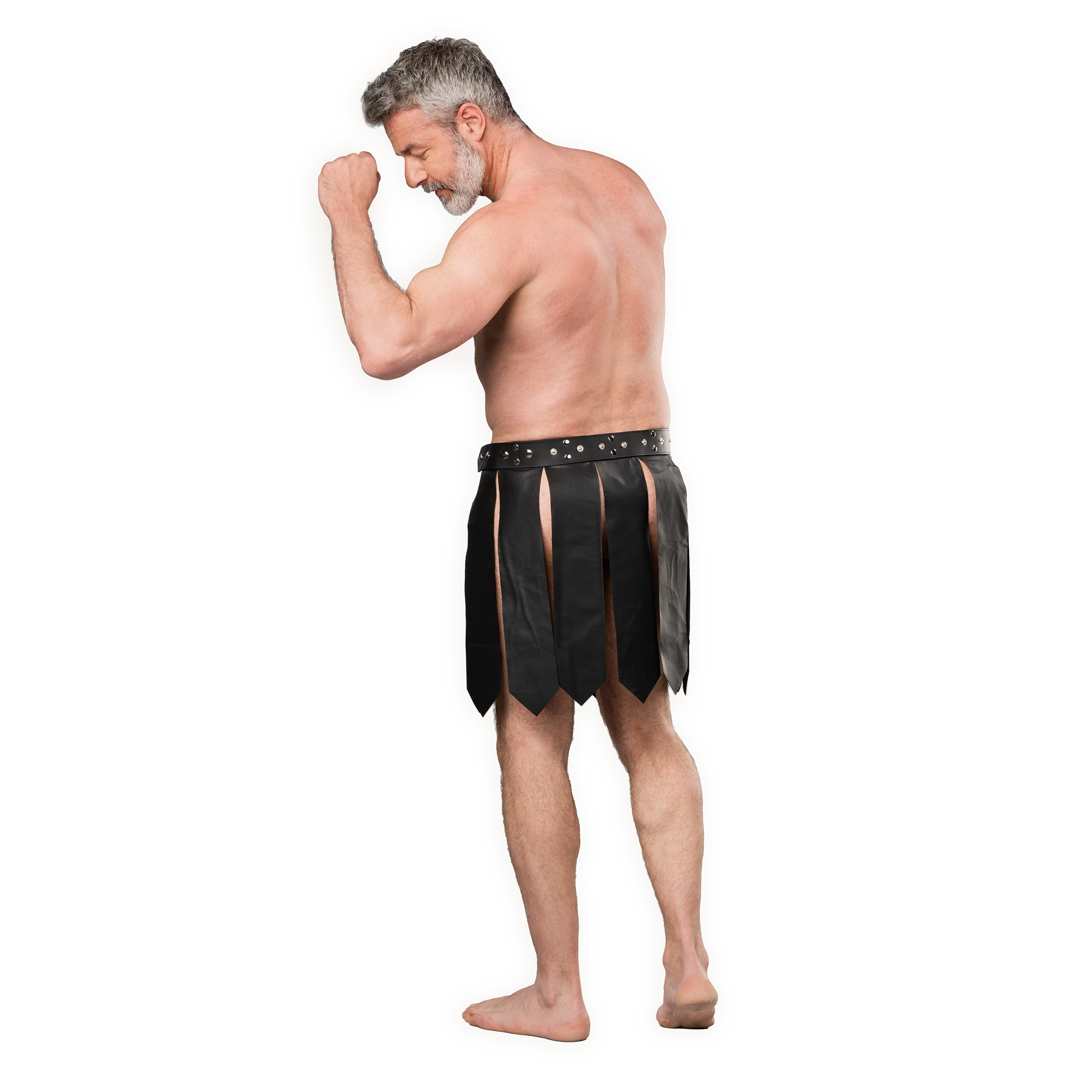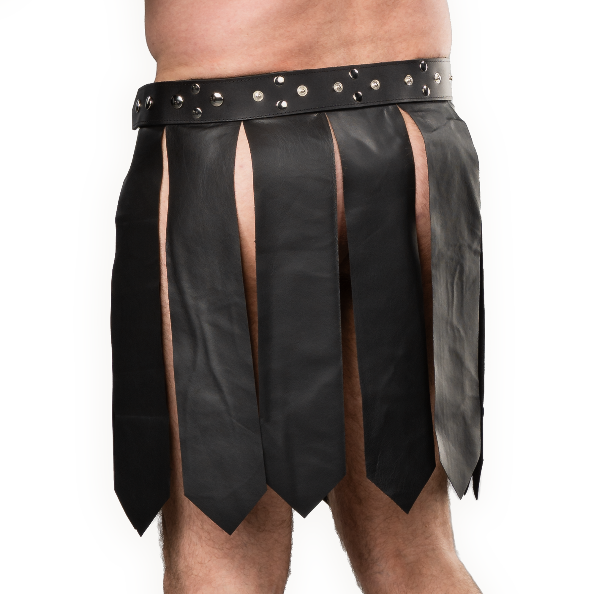 This men's skirt in gladiator style is handmade of luxurious, sturdy nappa leather and has a belt of sturdy saddle leather.