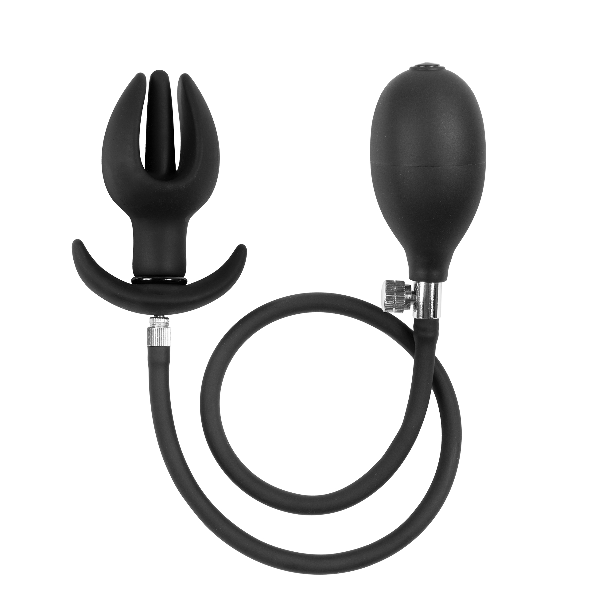 This anal plug can be easily inflated by squeezing the hand pump. It is equipped with a valve (on the pump) to deflate it quickly.