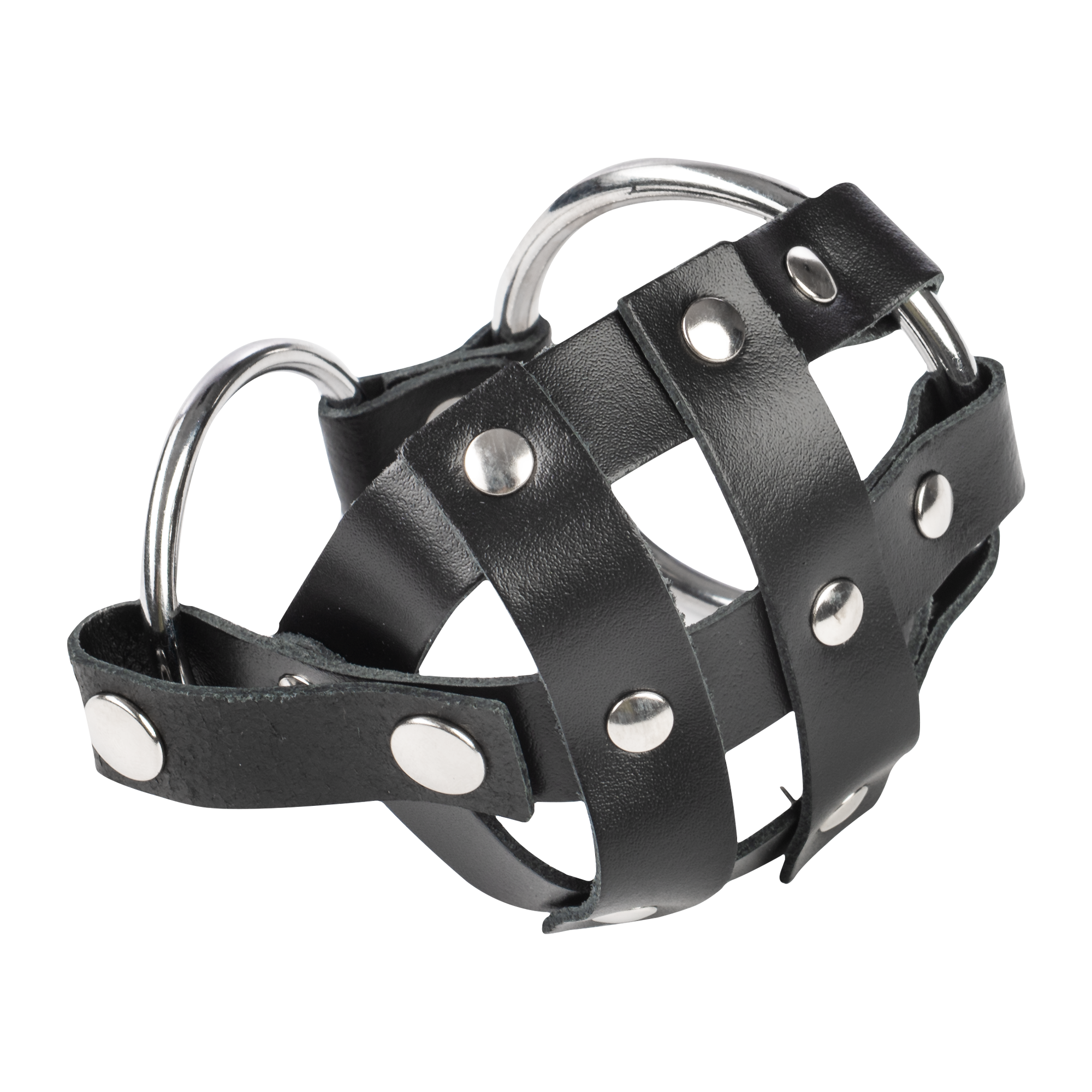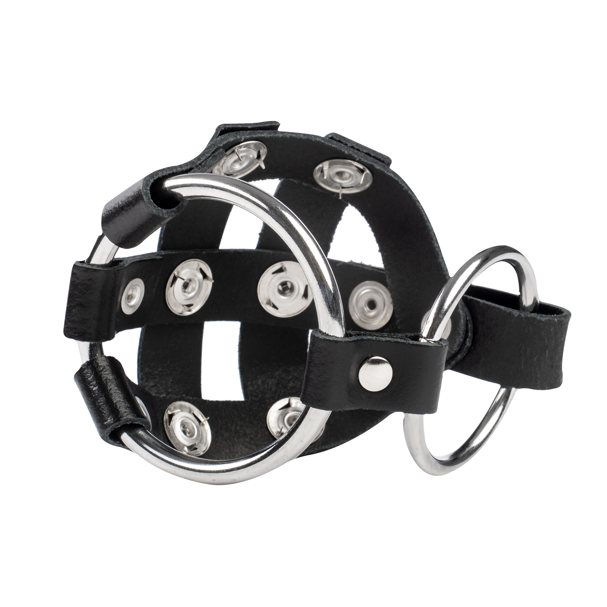 Leather scrotum cage with nails.