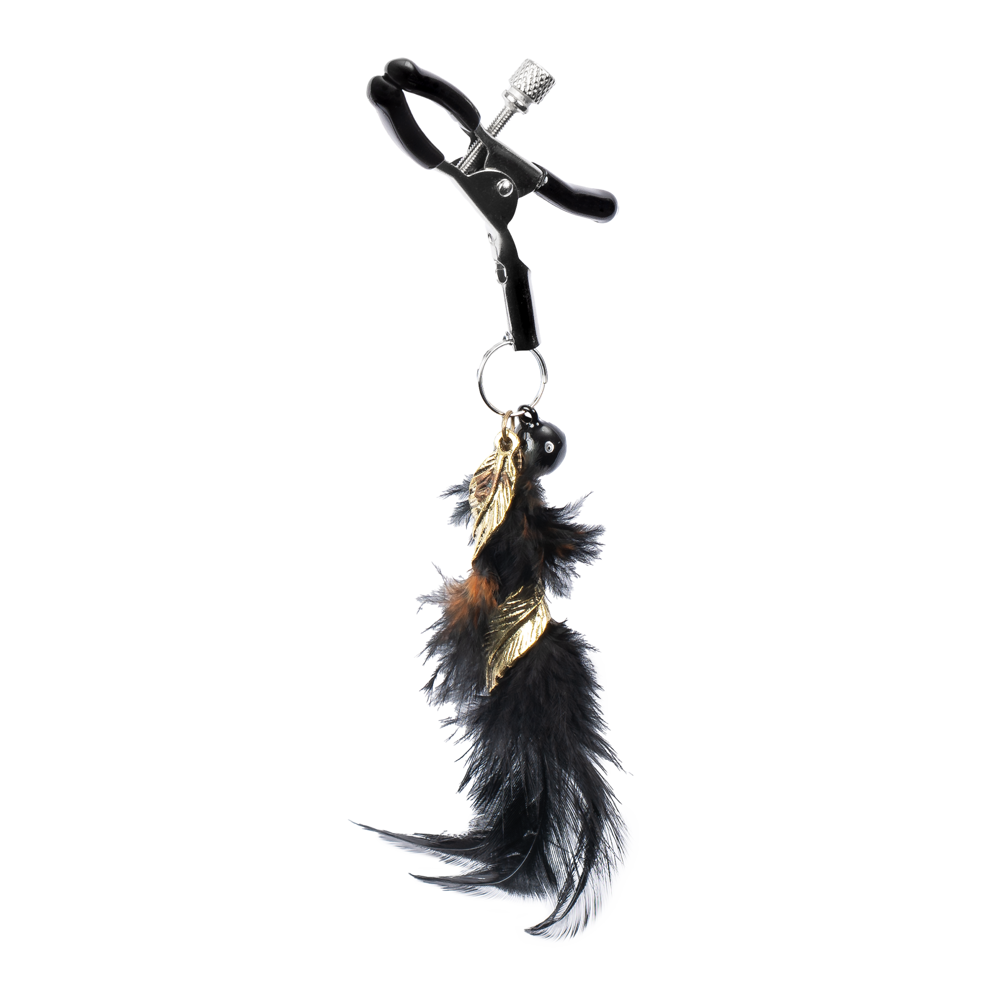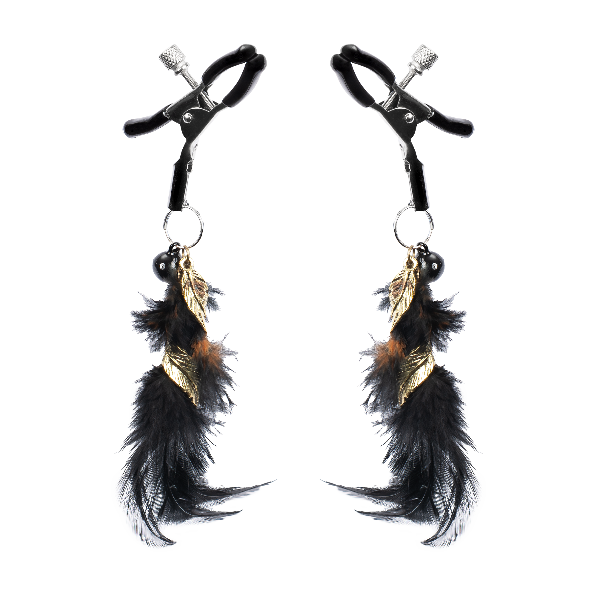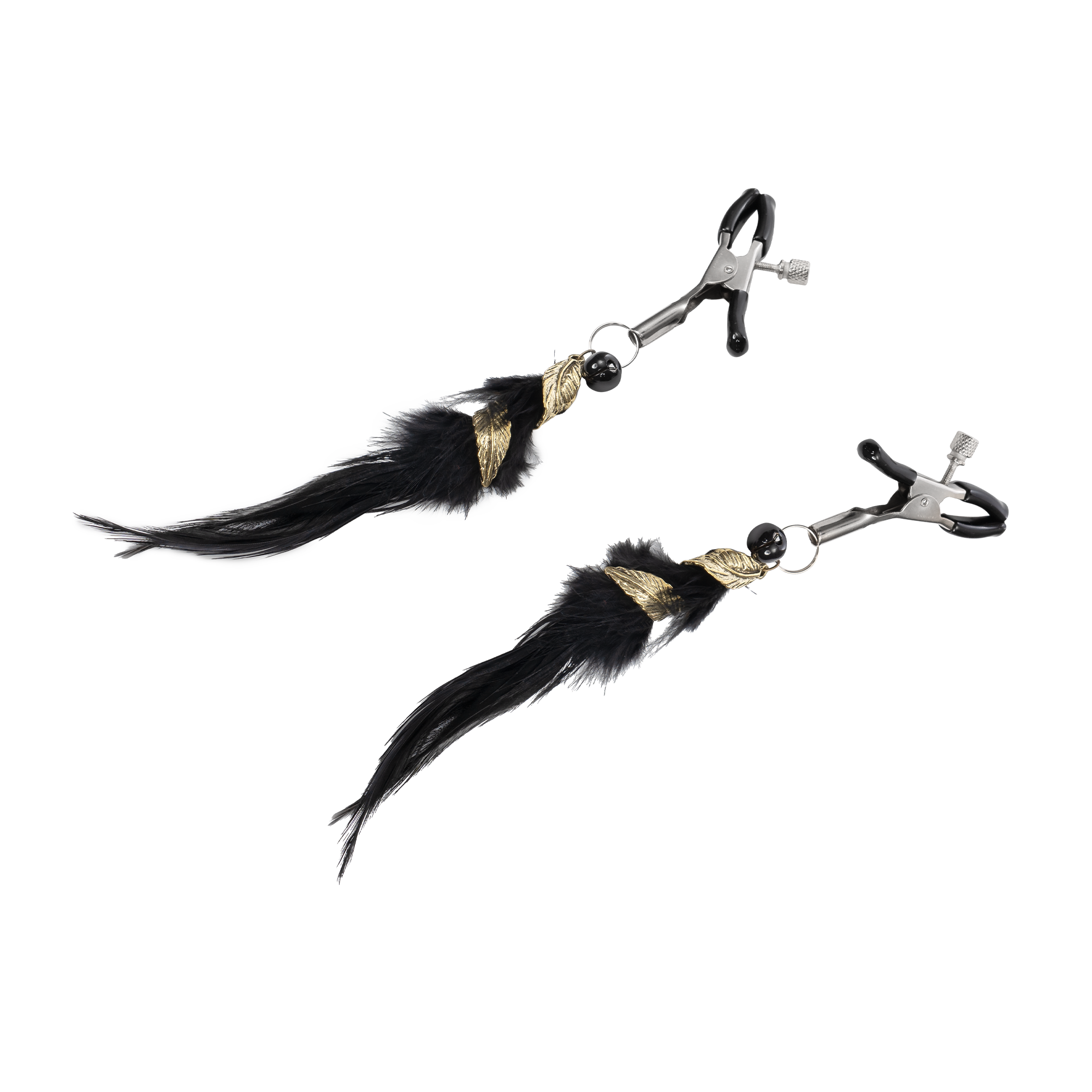 Rimba Bondage Play - Nipple Clamps with Feathers - Black & Gold