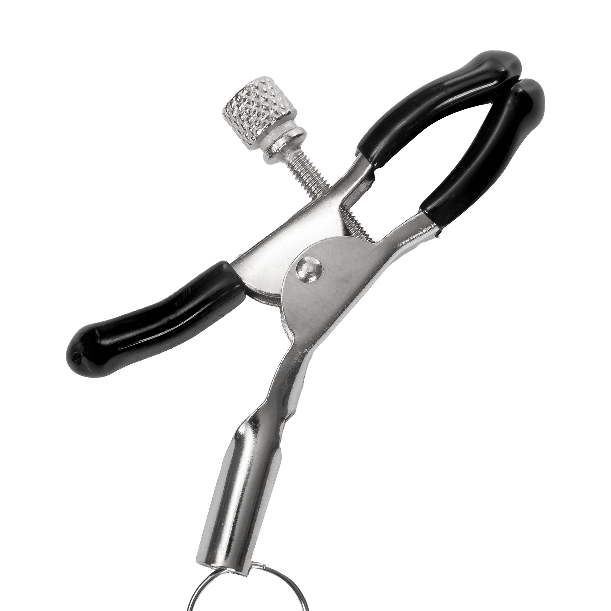 Discover stylish seduction with the Rimba Bondage Play Adjustable Nipple Clamps.