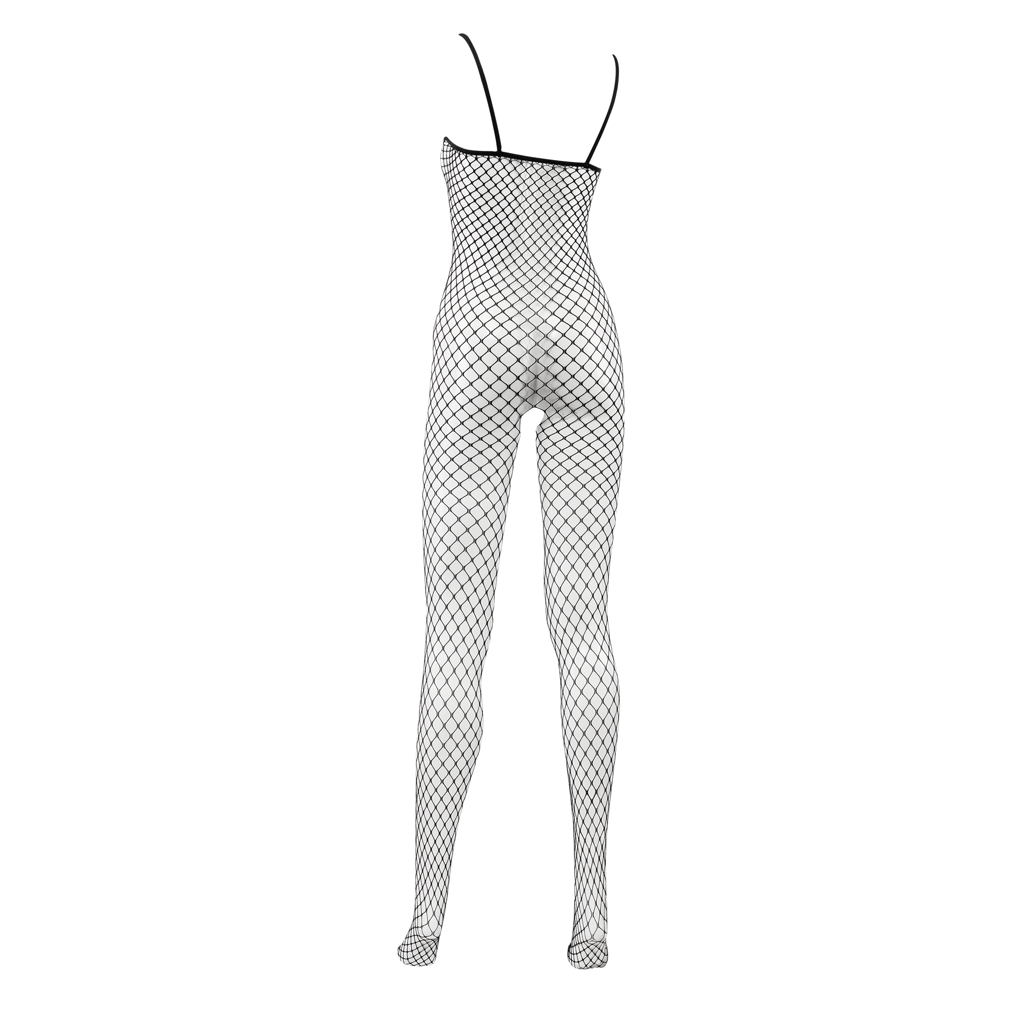 Este catsuit está hecho de tela de rejilla elástica y tiene la entrepierna abierta.