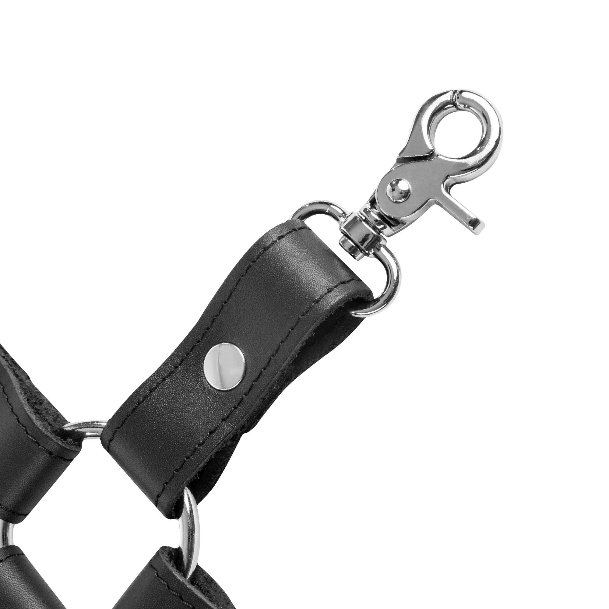 También vendemos este hogtie en un set con esposas de cuero para manos y pies (7658).