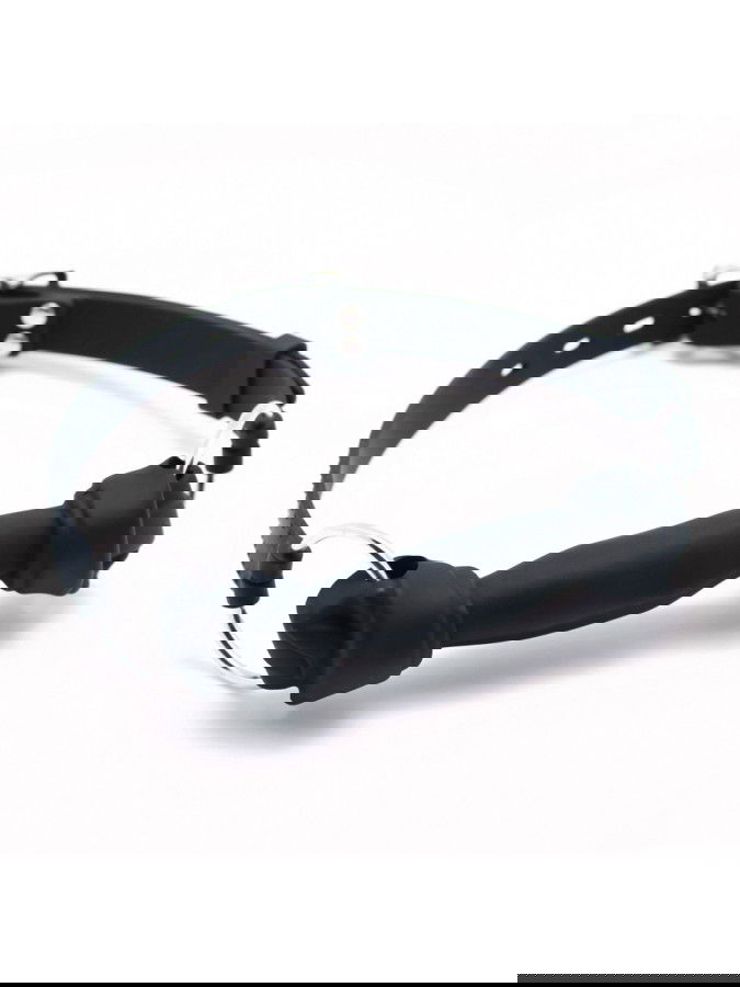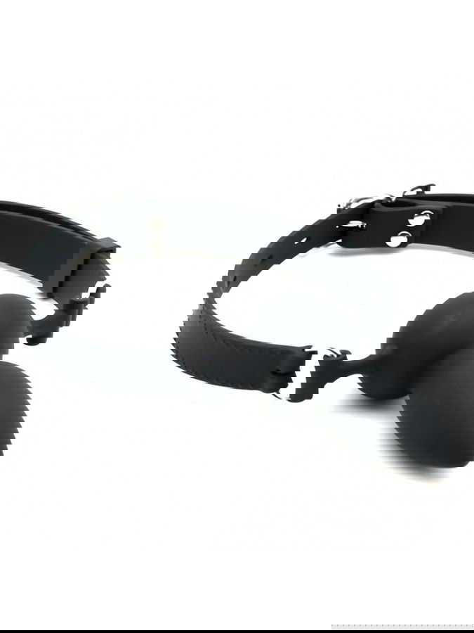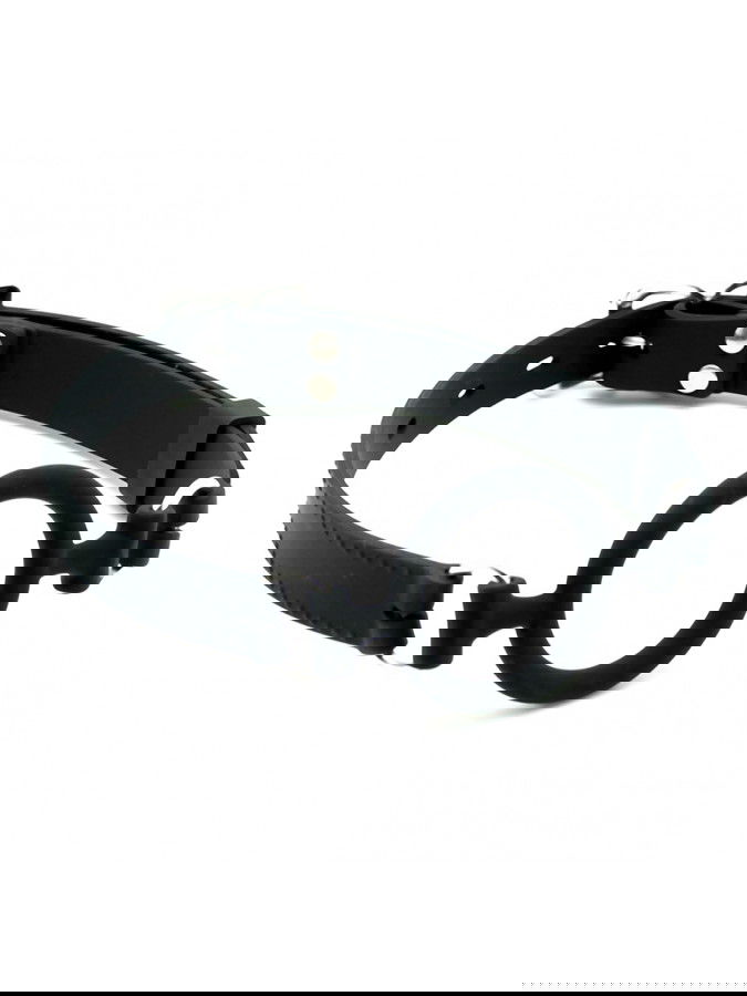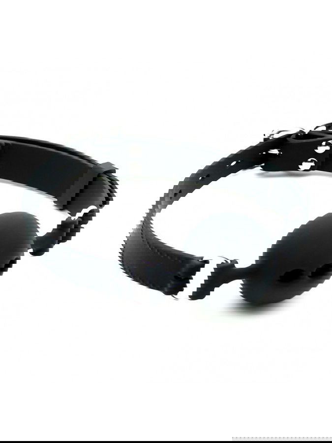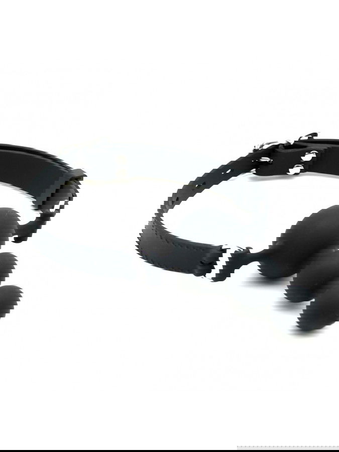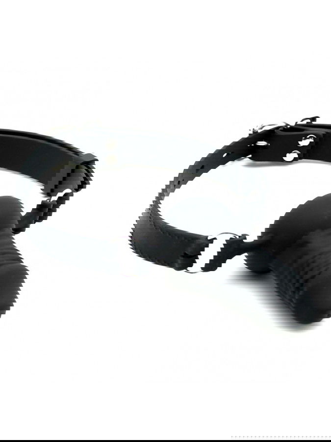 Rimba Latex Play - Bouche Bâillon avec Pénis (Ø 40 mm) - Noir & Argent