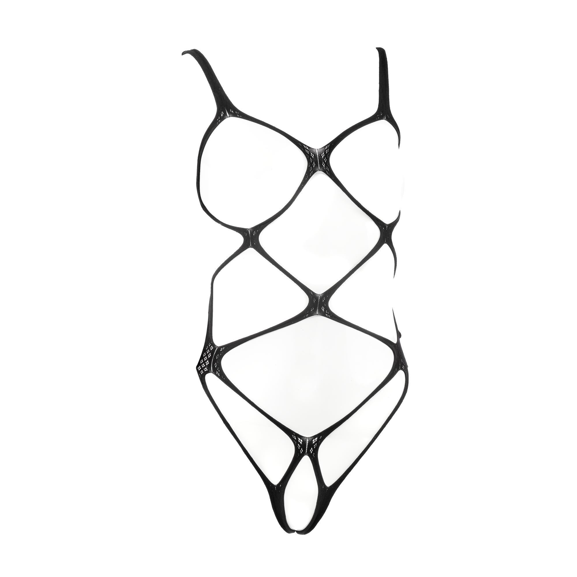 Ce bodystocking est fabriqué dans une matière très élastique et comprend un entrejambe et des bonnets ouverts.