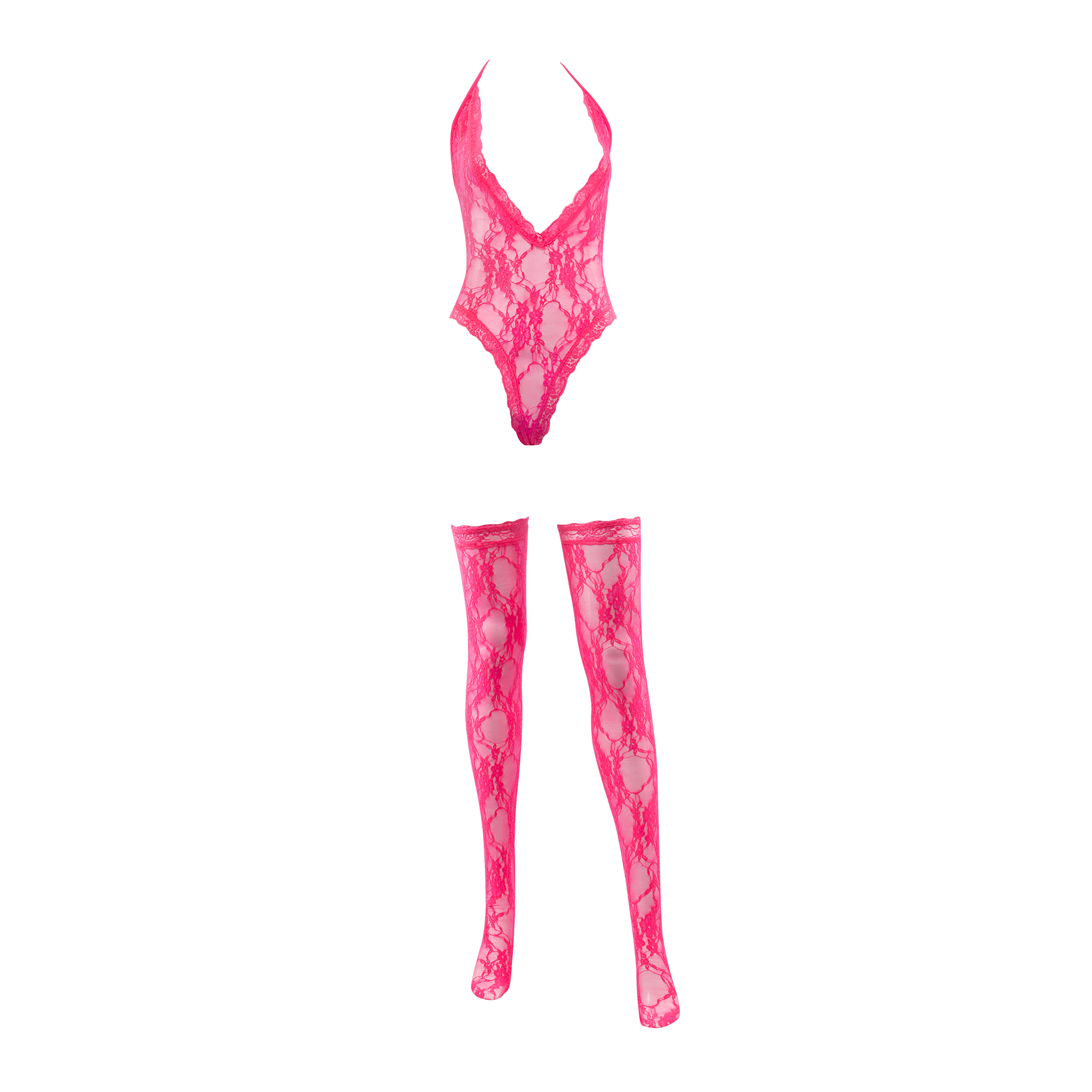 Amorable by Rimba - Bodystocking avec bas - Taille unique - Rose