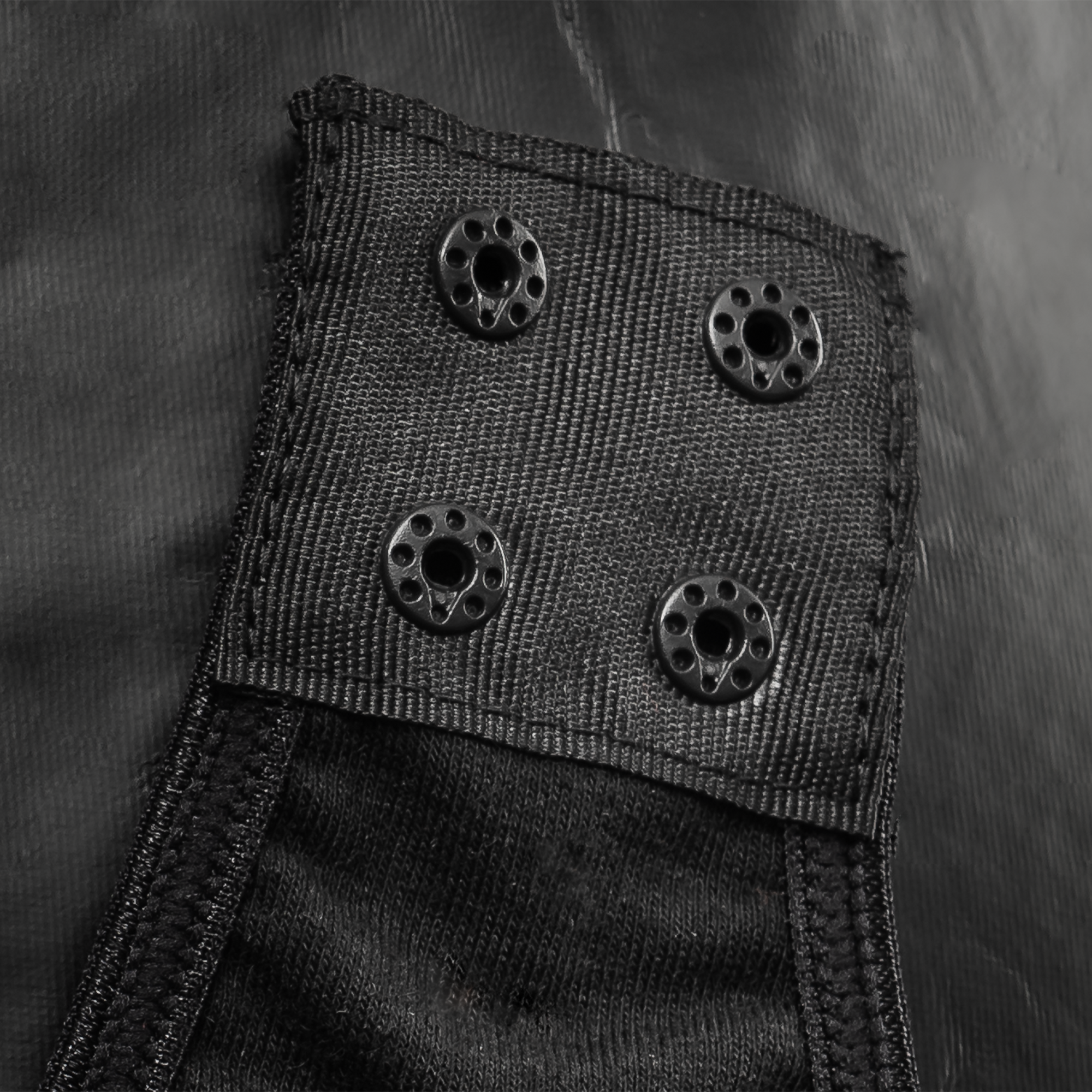 En bas, quatre élastiques réglables avec clips permettent d'attacher les jarretelles.
