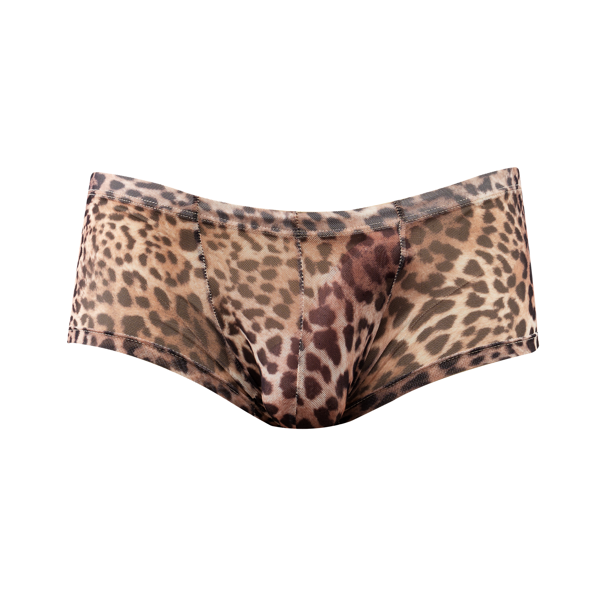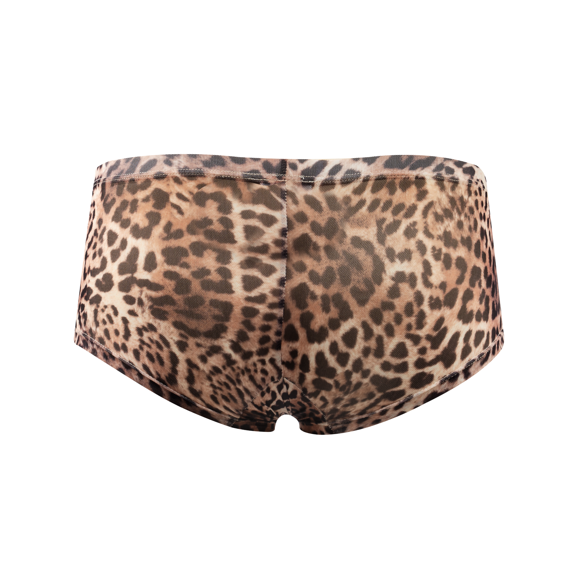 Ce boxer est confectionné dans un tissu extensible légèrement translucide à imprimé léopard.