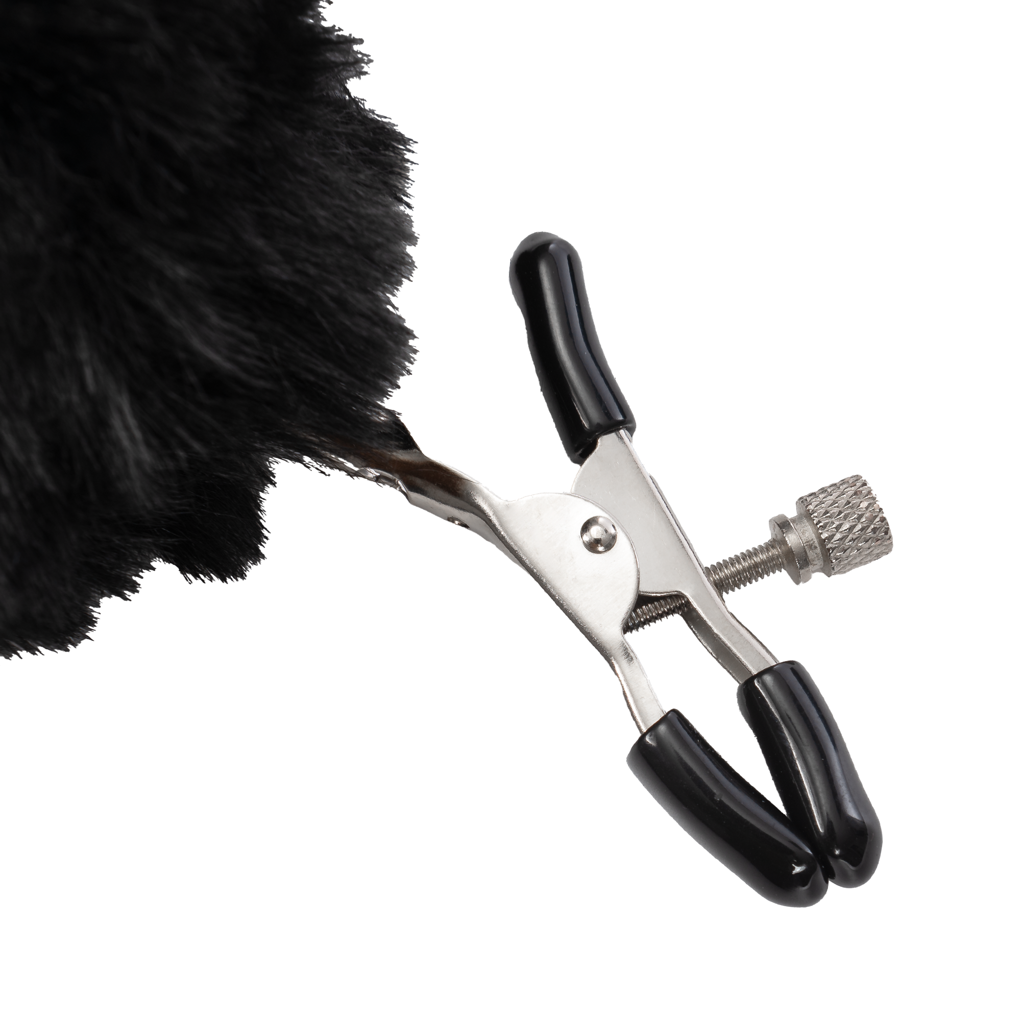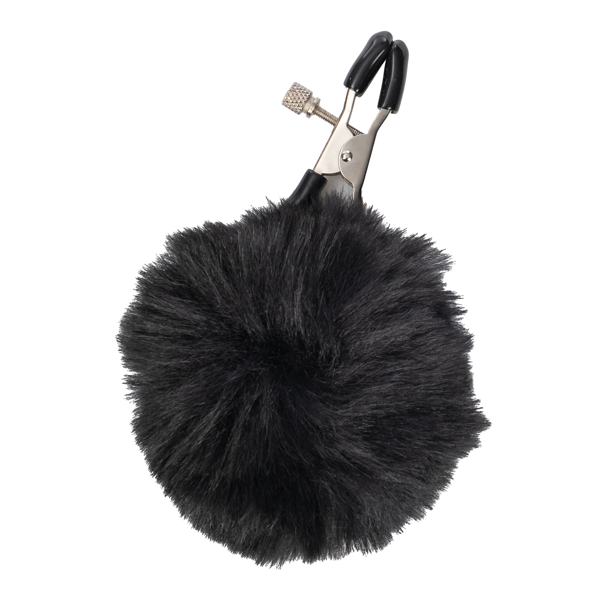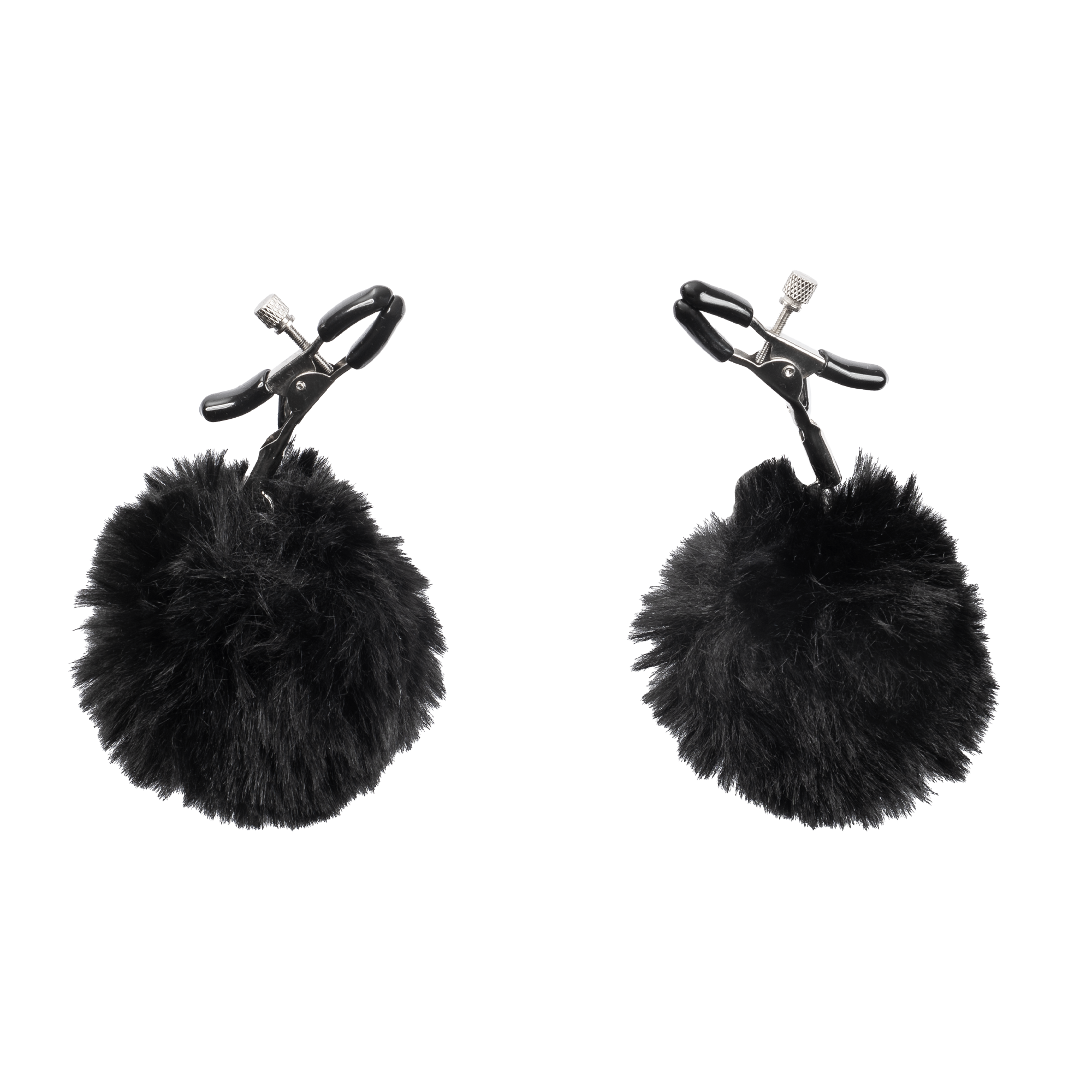 De klemmen zijn lichtgewicht en afgewerkt met zachte, zwarte pompons die verleidelijk bewegen bij elke aanraking.