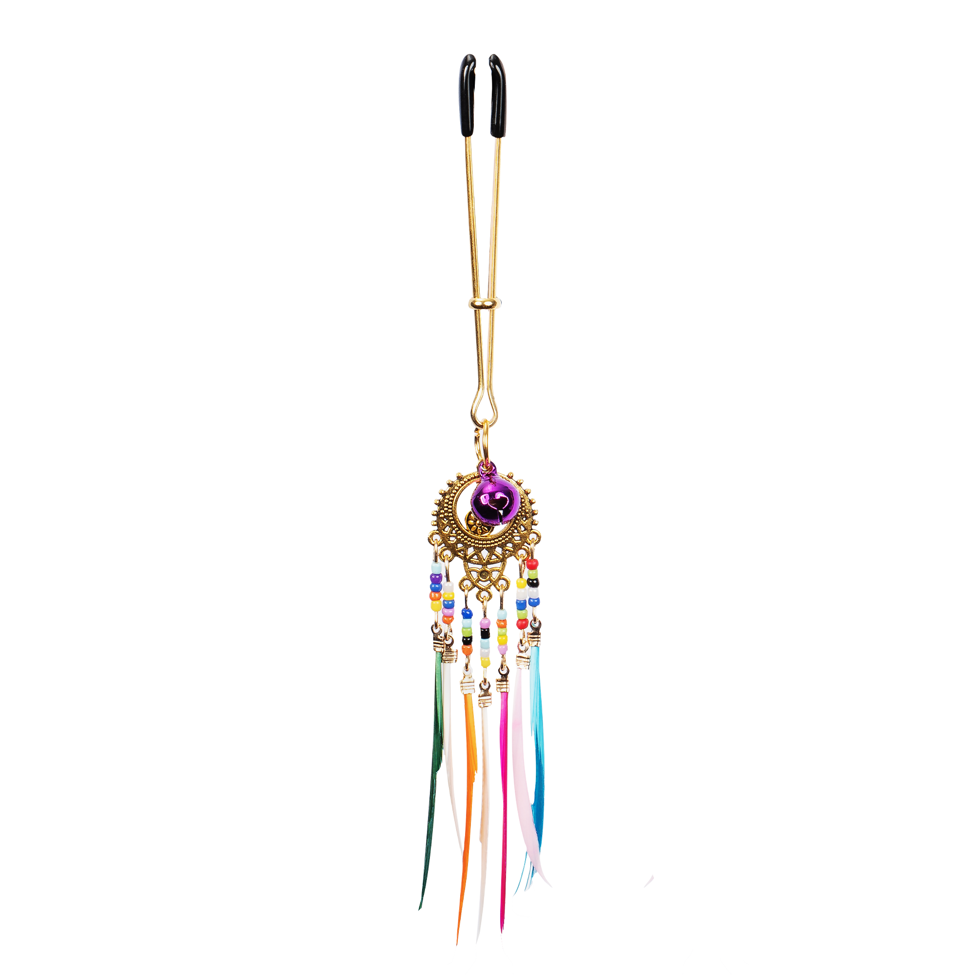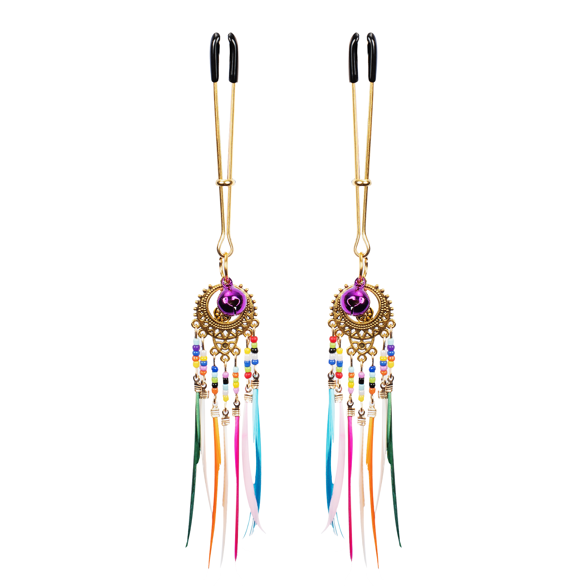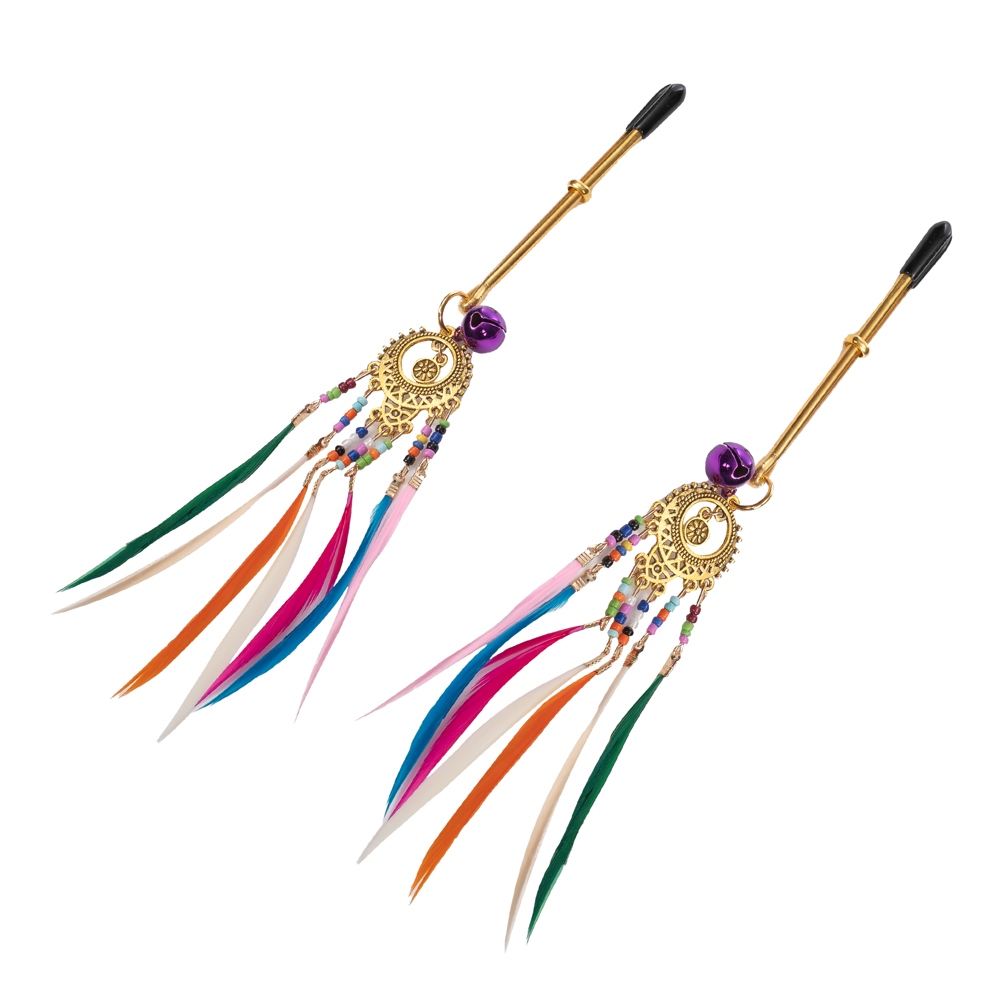 Rimba Bondage Play - Tepelklemmen met veren - Multicolor